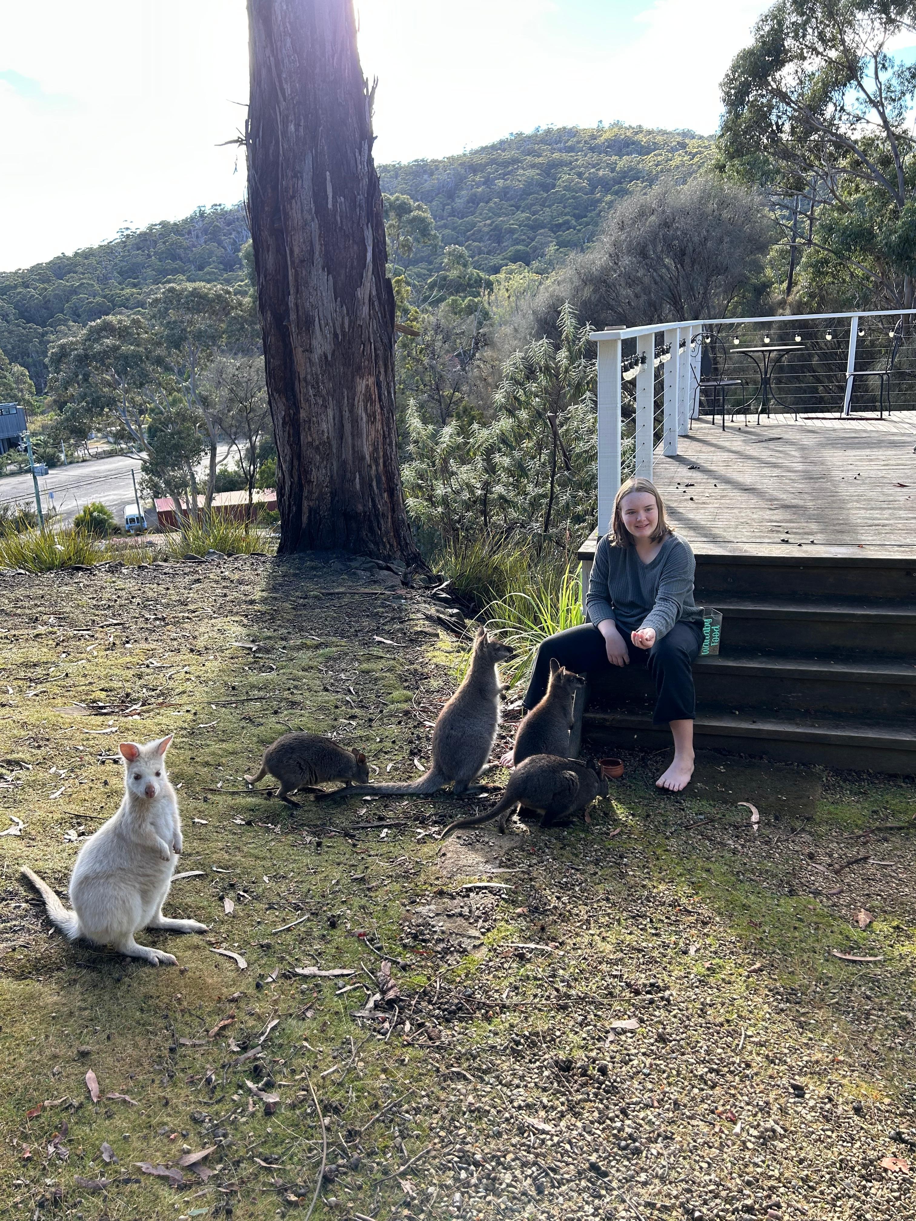 A: The local wallabies generally visit the property in the morning and afternoon and are very tame. Wallaby food will be left at the house if you want to feed them. Occasionally, you’ll see rabbits and echidnas drop by.