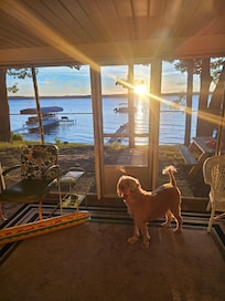 The place is in an excellent location and beautiful sunsets over lake, and close walking distance to a very small quaint town. Cottage is cute and has been updated in some places very nicely. As it does state it truly is "Grandfather's Cottage". The downside we felt were lack of privacy curtains in the bedrooms. There were very sheer white curtains that were completely see through. It would be very nice if actual privacy curtains or blinds there, so if you wanted to change in a bedroom or shut for some morning sleep in time, not have entire bedroom light at sunrise. The 2 small windows in living room would be nice to have a pull down blind option (there is nothing on these windows) to have privacy from close neighbors if you wanted. There were only two of us, so we hung some bed sheets in bedrooms & improvised with towels in the living room. Electrical outlets are very minimal and very outdated (thus to be expected with age of home). Tough if needing to work with a computer or electronic devices in certain spots/limited capacity. I give it an 8.5/10 for being clean (will admit, I probably have a little OCD on the cleaning scale). Great place if you want to be directly on lake and have the views, along with the BEST feature of being able to bring your fur babies along. Thanks for the adventure!