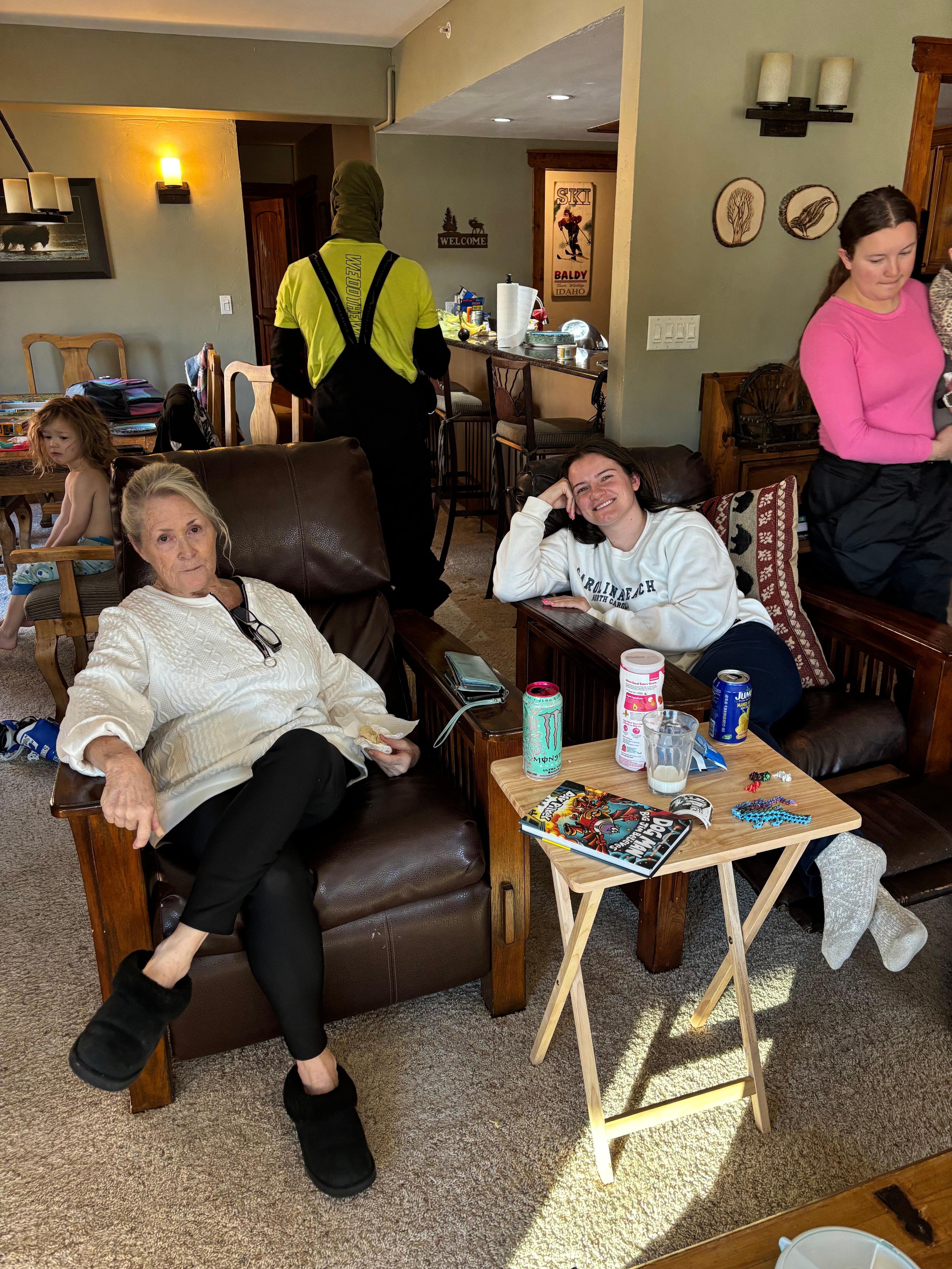 Each of the three bedrooms features plush sleeping arrangements and access to one of the unit’s private balconies. The master suite guest will enjoy a queen bed and views of Maggie Pond/ Quicksilver Chairlift while guests in the spare queen bedroom and two double bedroom will have views of the ski school and plaza. The double vanity guest bathroom provides ample space for busy mornings and also provides great views of the ski runs. After a day on the slopes, you can choose to enjoy your meals around the beautiful wood table in the adjacent dining area, with seating for 8 people, or at the barstool seating at the kitchen counter (seats 4).
