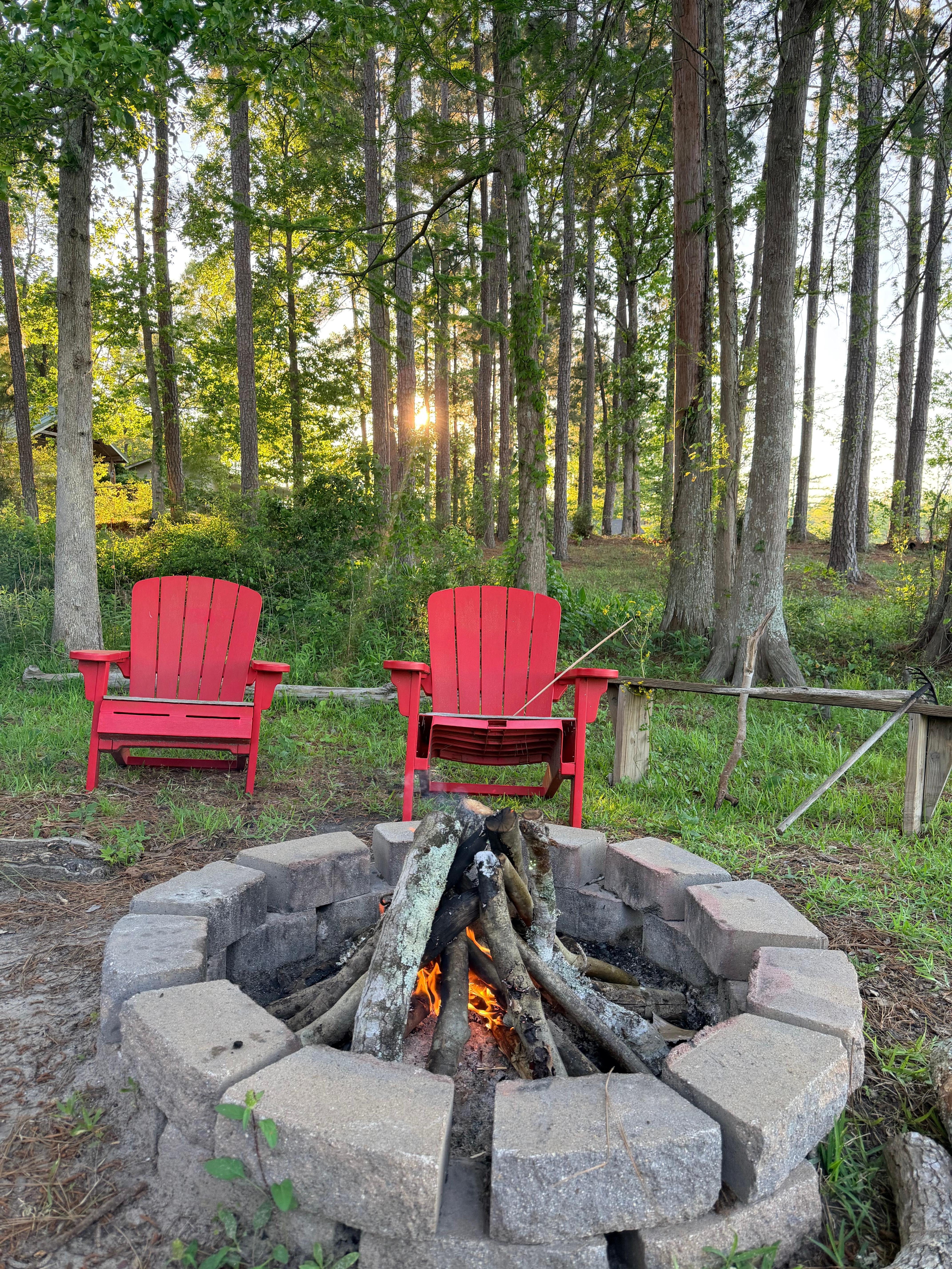 Park style charcoal grill, & a place for a fire to roast hot dogs, marshmallows.