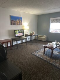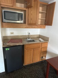 There is usually the same man at the front desk, but this time we had the pleasure of getting checked in by a woman that charged our card twice, and we have to wait days for our refund. We went to our room and it wasn’t cleaned properly at all. Sirty swim trunk & swim towel were openly on the closet door. Deodorant under the heating/cooling unit. Dirty & mixed match furniture. Kitchenette missing a door on the drawer. Ice bucket had pubic hair on it. My husband flagged down a staff member & they text the woman at the front desk. We were allowed to see her text, stating we weren’t getting another room & no one was going to come clean it. It was too late to find another hotel, so we went and got cleaning supplies & cleaned the room ourselves. We stayed too days house keeping didn’t even come to replace our used towels or take the trash. I’m extremely disappointed in the dismissive & unprofessional service we’ve received.