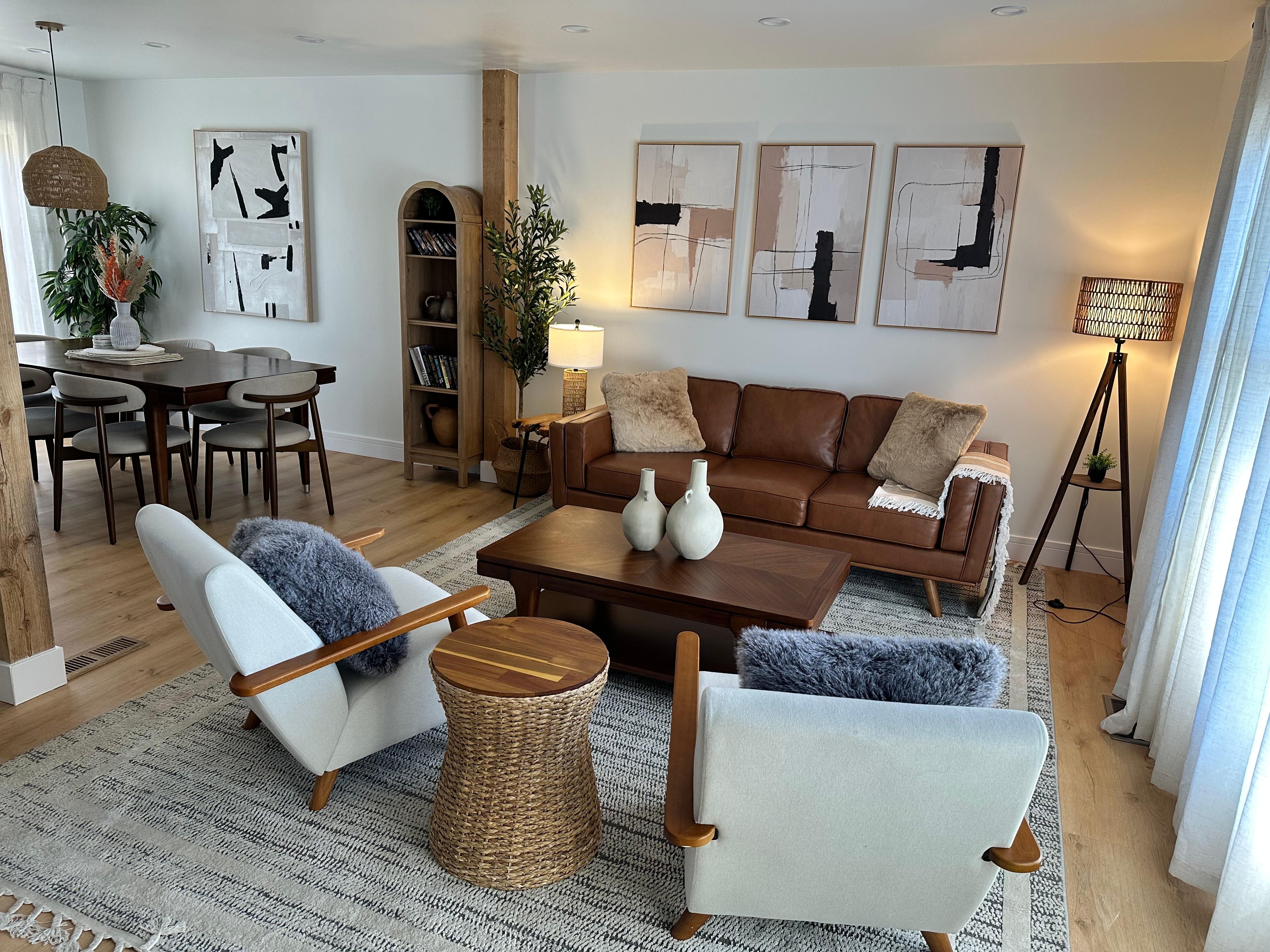 Spacious & Inviting: Open-concept first floor with a large living room, dining area, family room, and fully equipped kitchen