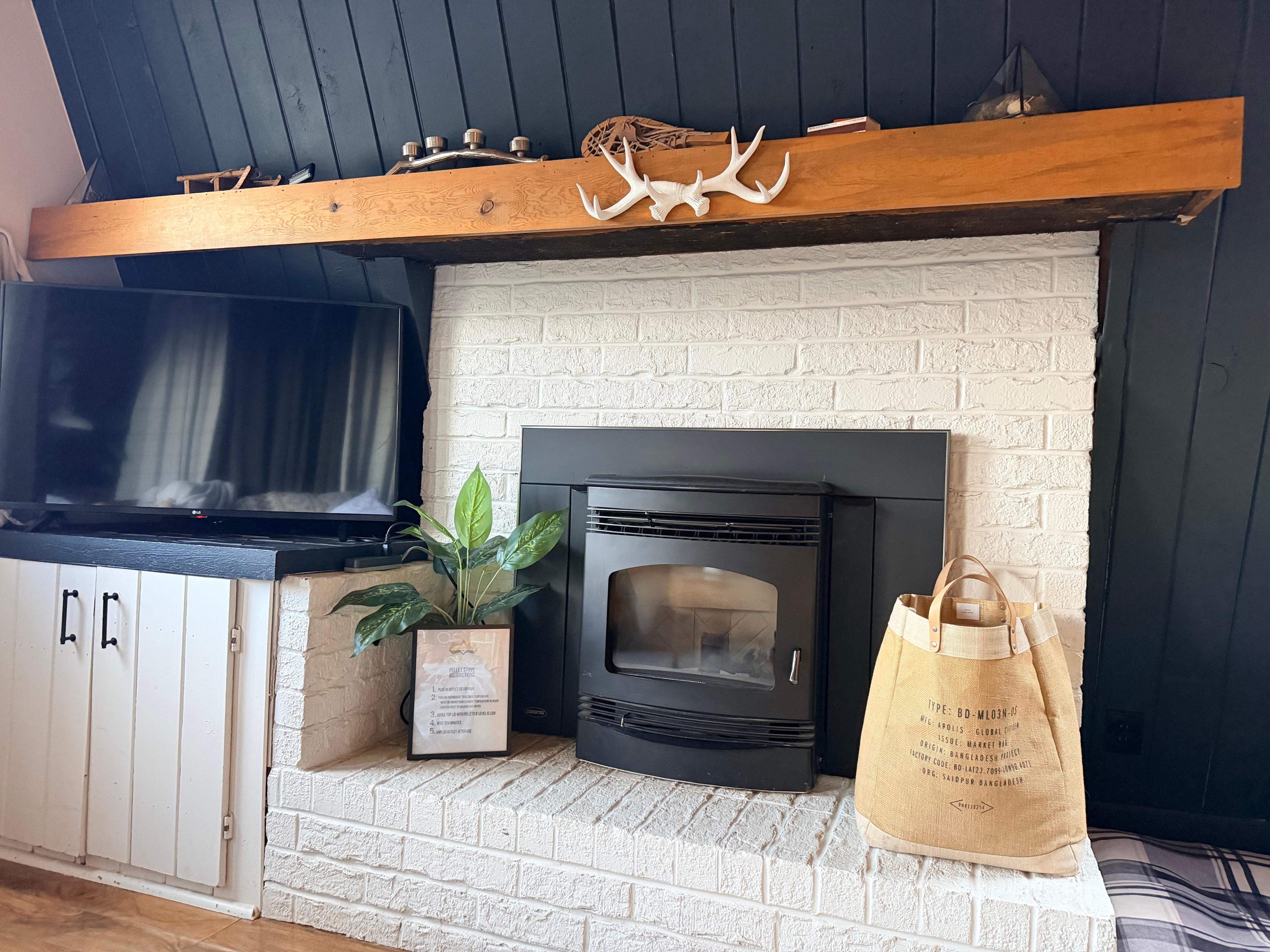 Warm wood pellet stove to keep you toasty in colder months.