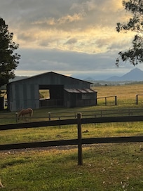 The host was very welcoming and obliging and the property is in good condition and clean although it has become dated. Admittedly, the decor is in keeping with a farm stay. The property is very peaceful and the scenic countryside was very green after some good rain. There is a beautiful view of the scenic rim mountains which were quite spectacular when there was bright sunshine piercing through dark skies. Unfortunately there is a little or no mobile phone reception and no Internet but for some guest this would be an attraction. It is unfortunate how reliant we have become on an Internet connection for entertainment, especially when it comes to streaming movies and shows.