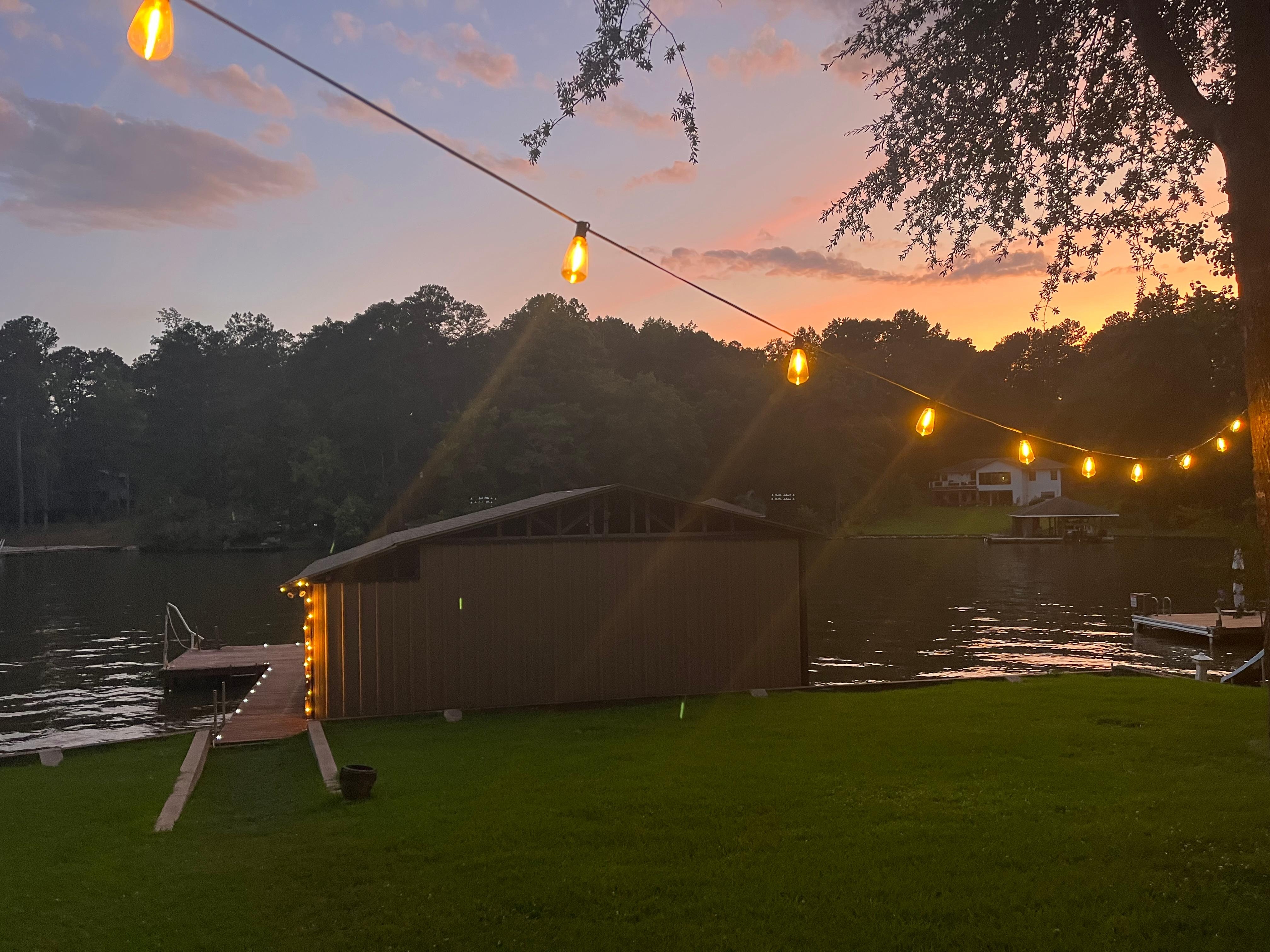 Easy walk to the end of the private dock, fish or swim right off the dock, a great view of the lake. Double boat house, plenty of room to put your water toys. You can launch your boat right in the cove. Outside wood pit overlooking lake.