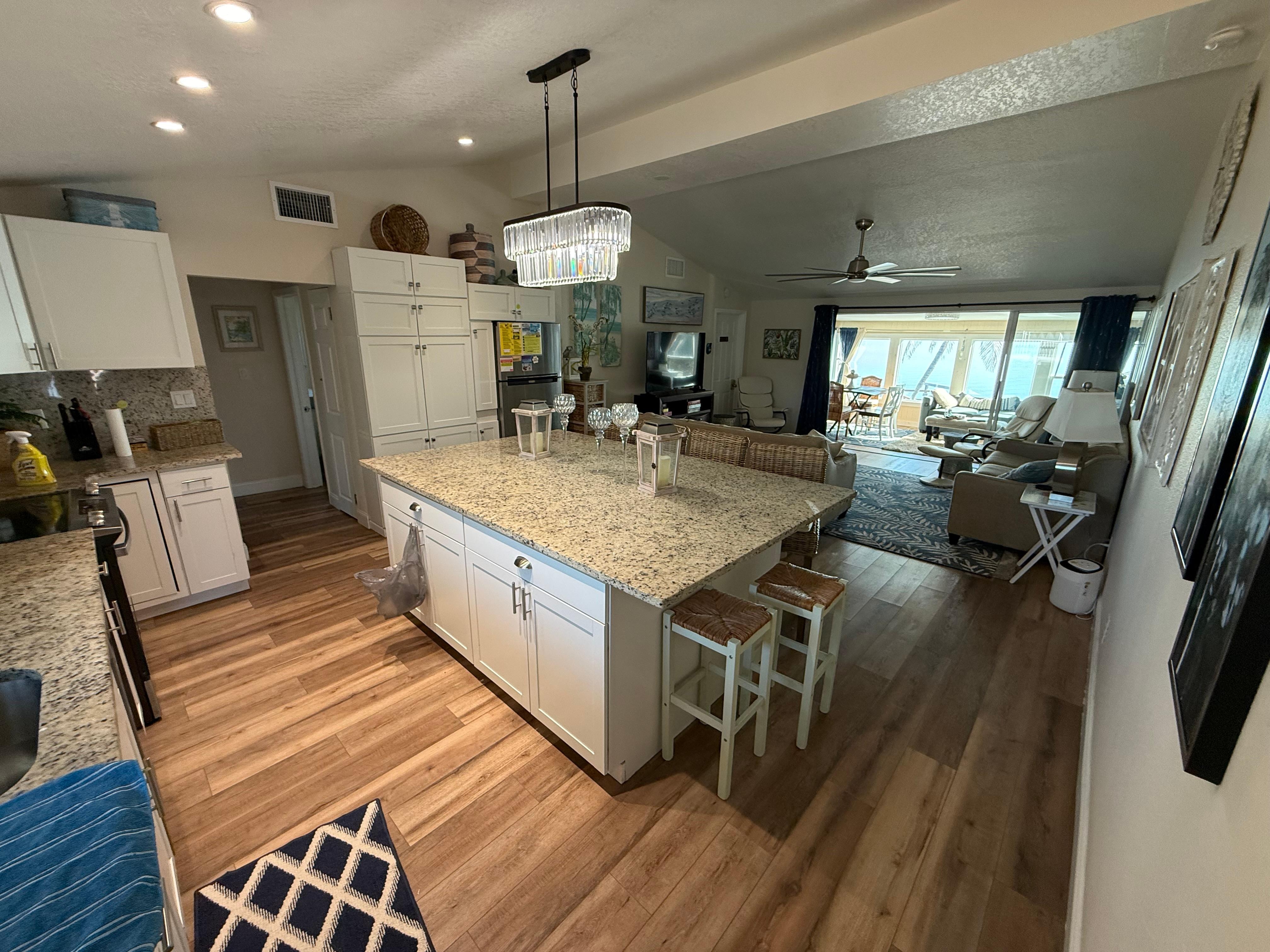 Guests have access to upstairs Bella Vista and also to common area amenities: pool, our sandy “Lemon Bay-front beach”, fishing dock (no boat docking), Ping-Pong, laundry room.