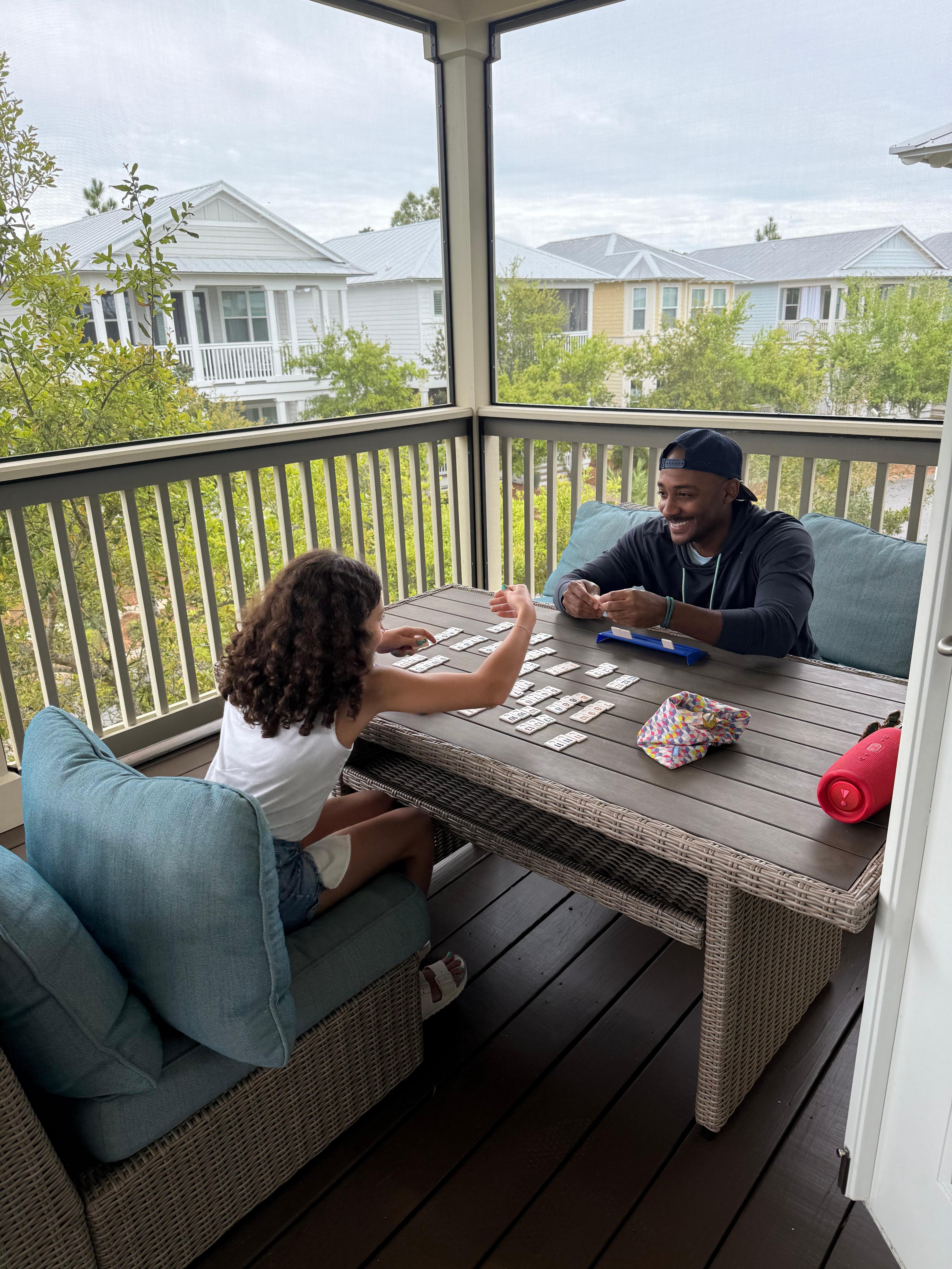 La casa cuenta con 2 grandes porches seleccionados. El balcón de arriba tiene un área de descanso que es perfecta para jugar juegos de mesa o cartas. También tiene un gran columpio donde puede sentarse por la noche y disfrutar de la tranquilidad de la comunidad tranquila. El porche de abajo es como una extensión de la sala de estar. Puede sentarse afuera en la mesa del comedor y disfrutar de un almuerzo o cena relajantes después de regresar de un día en la playa.