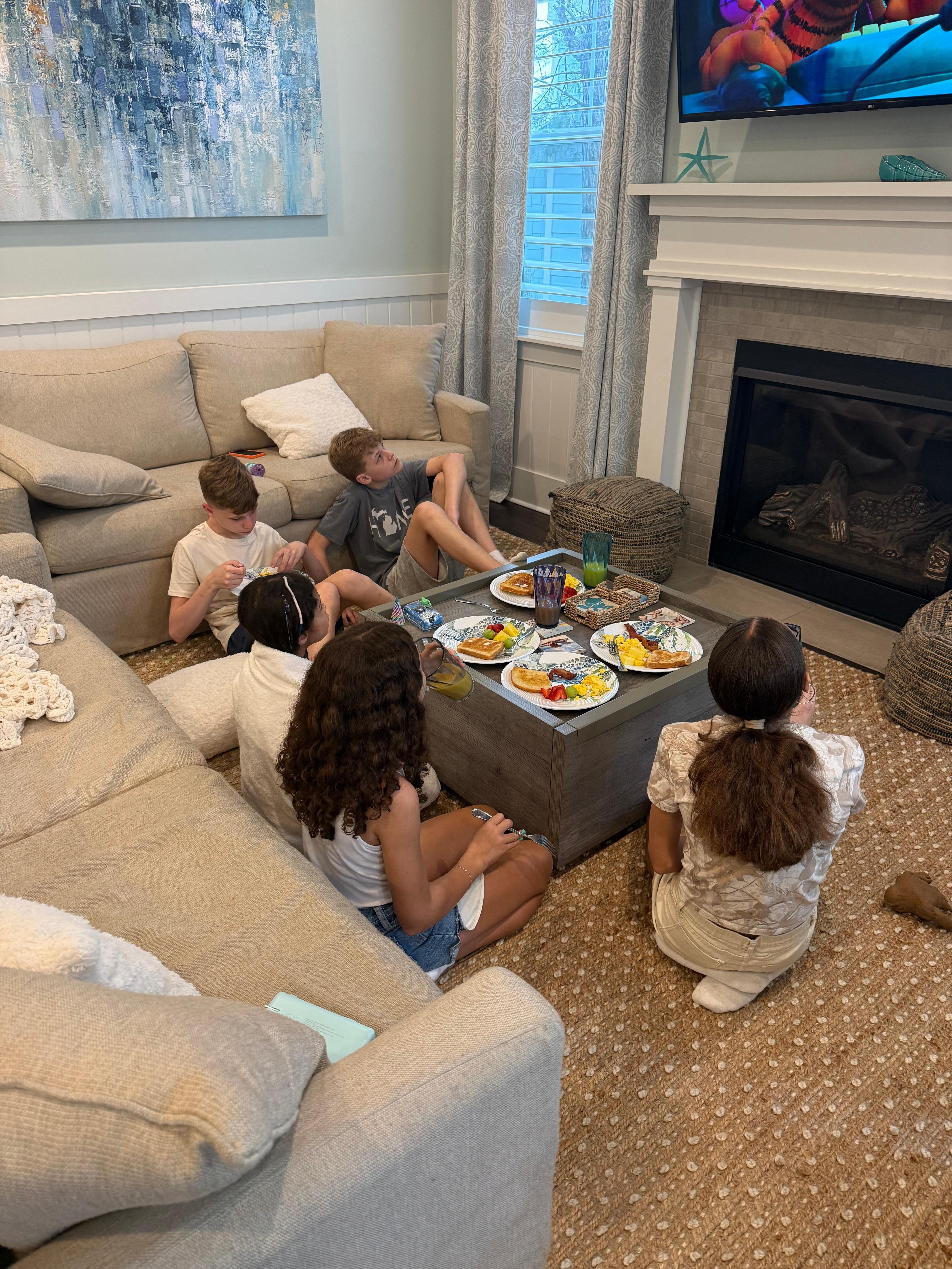 Nuestra casa de 4 dormitorios y 3. 5 baños tiene capacidad para 13 y viene con un carrito de golf de 6 plazas. Hay 2 master suites, la principal arriba y la jr master abajo. 3 dormitorios cada uno tiene una cama king y el cuarto dormitorio es una habitación litera con literas dobles con una cama nido. Hay una sala de estar en la planta baja con un sofá cama queen que cuenta con una gran televisión sobre una chimenea de gas. En la parte superior de las escaleras, hay otra sala de estar con un sofá cama que es perfecta para que los niños pasen el rato y vean la televisión mientras los adultos se relajan en la planta baja.