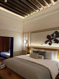 The second thing: the property is beautiful. This was perhaps the nicest hotel room Iāve ever stayed in. The suites are stunning and comfortable and have everything you need. From big details, like a gorgeous tub, to small details, like including a yoga mat and pool bag for you, they have thought of everything. I would move into that suite if I could. A word of warning, the mattress is VERY firm, which caused me back pain, but my partner was fine with it. Just be aware if you have spinal pain like me. The bedding was beyond comfortable, though.