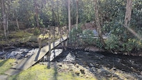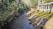 The property borders the beautiful Nantahala National Forest of the Great Smoky Mountains and offers an abundance of exploration. Let the sounds of the rushing waters soothe your soul day and night. Walk across our bridge to enjoy bonfires or even pitch a tent for the night on our property across the river which is lit by festive cafe lights strung around the campfire. Hike through the Nantahala National Forest right out the backdoor. Or if you prefer the creature comforts, enjoy the fully equipped kitchen, comfortable new beds (King and Queen), new gas logs in our stone fireplace, Wi-Fi, large flat screen TV in the den and another in the King Bedroom with Dish Programming. Read a book or just gaze at the river from the sunroom/sleep porch with its comfortable oversized chairs and sofa which opens into a queen sleeper sofa. Enjoy family dining at the large dining table beautifully made of reclaimed barnwood.
