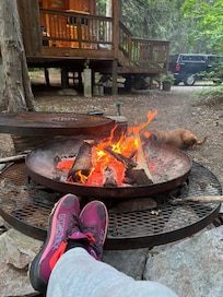 Cozy-dog friendly cabin with a hot tub, fireplace, that sleeps 6 guests.