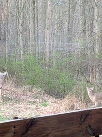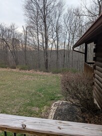 The cabin was great with just a couple of issues. On Friday the 13th it was too windy to have a bon fire which is nothing anyone could do anything about. My wife is a smaller person and even myself had a very hard time opening and closing the sliding door to the deck. The track was dirty and maybe just needs to be cleaned and the door rollers cleaned and dry lubed. The screen around the handle is coming apart and had duct tape on it. The futon in the living room had a badly worn cushion so you can actually feel that you are sitting on wood and not comfortable. Maybe a couch that can become a bed? I could not figure out how to operate the TV. On Sunday morning we had a great sunrise and 3 deer were eating in the yard which were very nice to see. We did not cook inside or on the grill or microwave. The bedroom mattress was very nice and we both got good uninterrupted sleep. We loved the privacy. We would like to use it again.