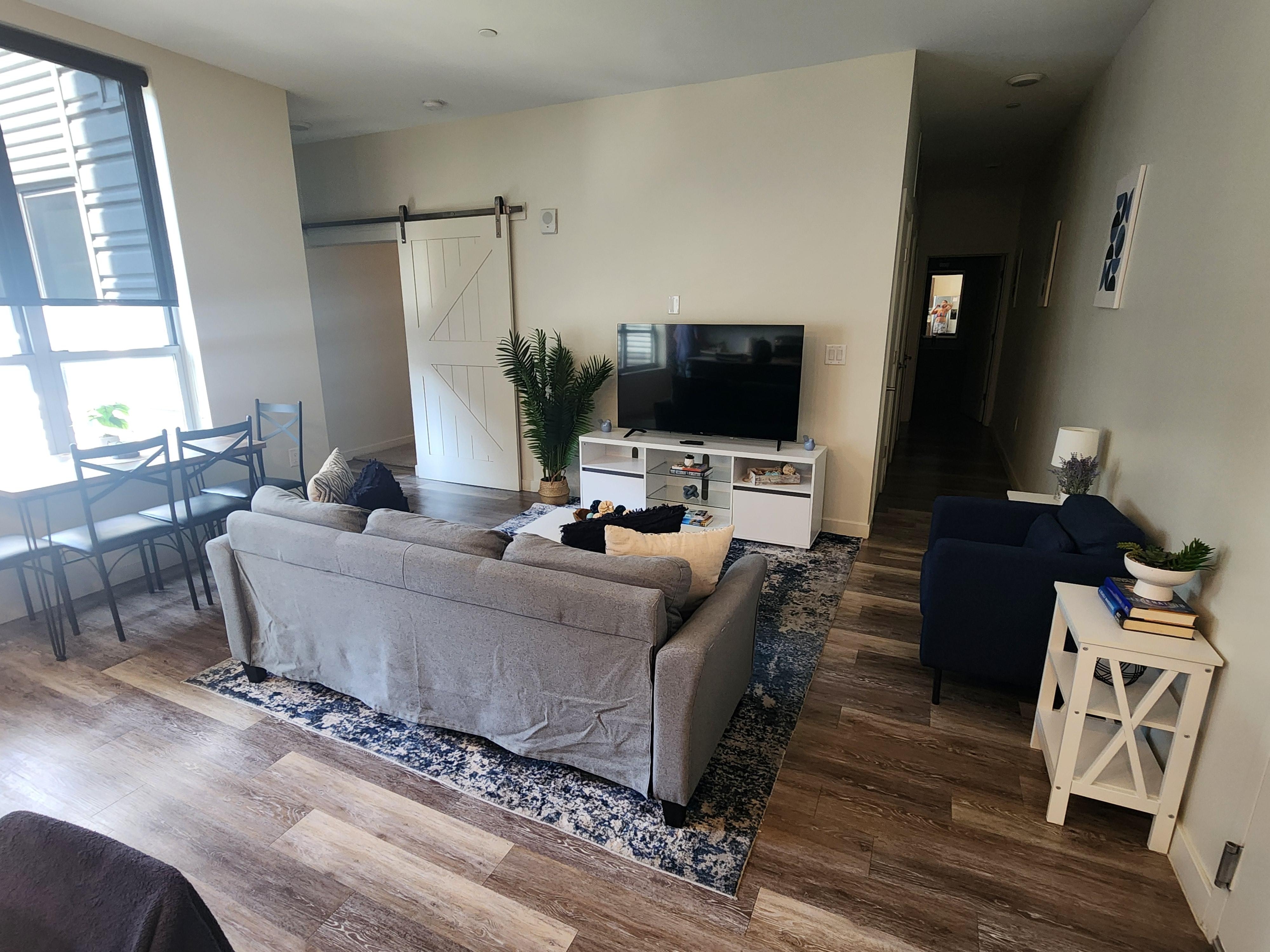 This luxury apartment is the perfect setup for all travelers. With a comfortable king size bed, a fully stocked kitchen and coffee bar, a spacious and modern bathroom, a desk space for all of our remote work travelers, and stylish touches throughout, the space is set up for our guests to enjoy every square foot! Outside of the private apartment, you will have access to a plethora of amenities, including a 24 hour gym, a golf simulator, a pool table, and many more! This building requires us to have a copy of the primary guests drivers license on file as well as the license plate number for the car that will be parked in the garage.