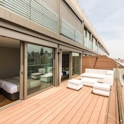Gran Vía Capital features a seasonal outdoor pool, a rooftop terrace, and multilingual staff. Wireless Internet access is complimentary. This Madrid apartment also offers concierge services and an elevator (lift). Parking is available onsite for a surcharge.