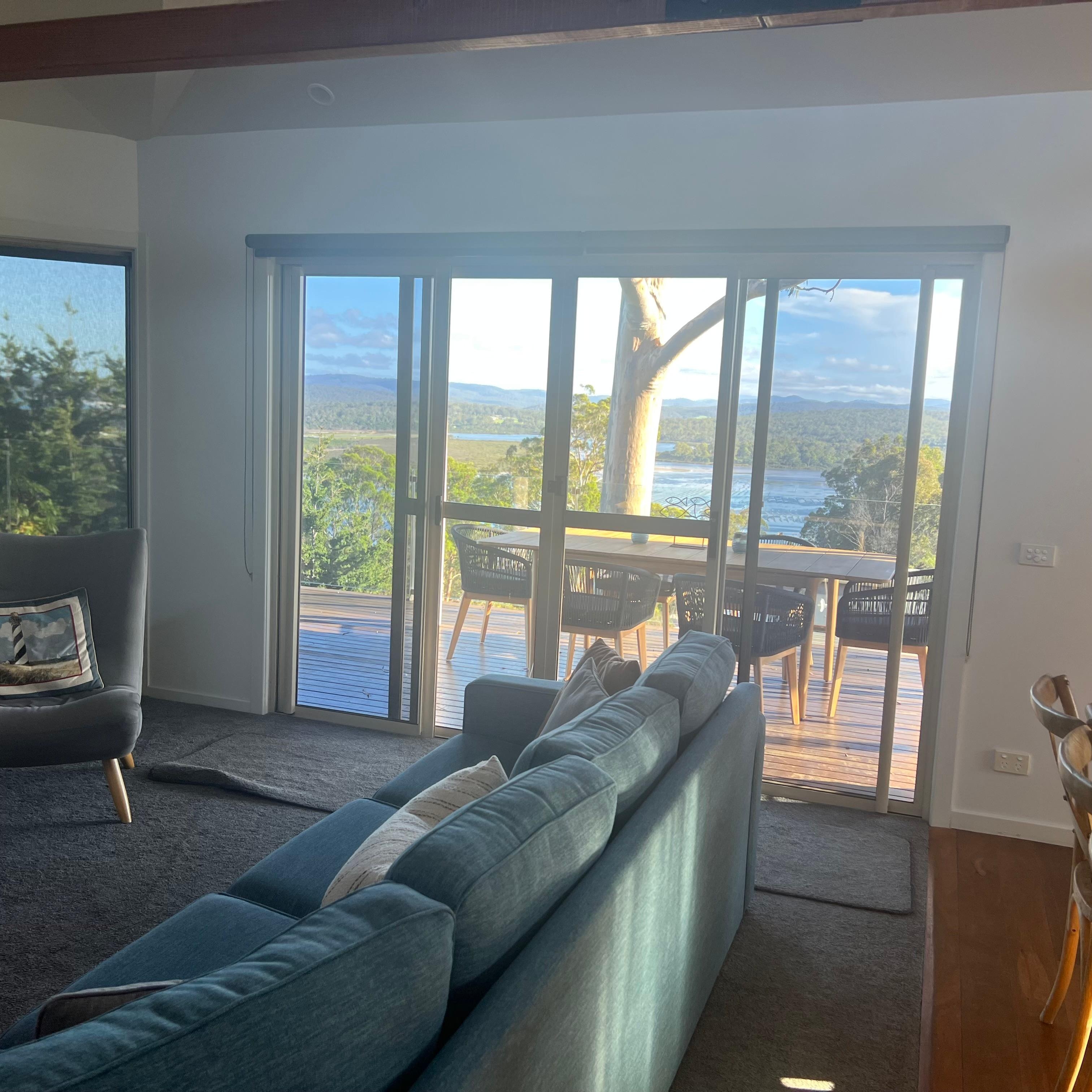 Pure Indulgence' provides comfort and space. The beautifully polished wooden floors guide you through the lovely living areas. There are 4 bedrooms (sleeps 8). The main bedroom has a King Bed. The second and third bedroom have Queen Beds and the 4th bedroom e bedrooms offer queen sized beds and the fourth bedroom has 2 x single beds. Please note that the 4th bedroom is accessed through the 3rd bedroom. The fully equipped kitchen is perfectly positioned to take in the ocean views and includes all the necessary items to create a home cooked meal. Featuring modern appliances, dishwasher, gas stove top and plenty of bench space for preparation. The first living area offers a fantastic indoor/outdoor living space with views from the living area that opens to the great back deck where the views are even more spectacular.