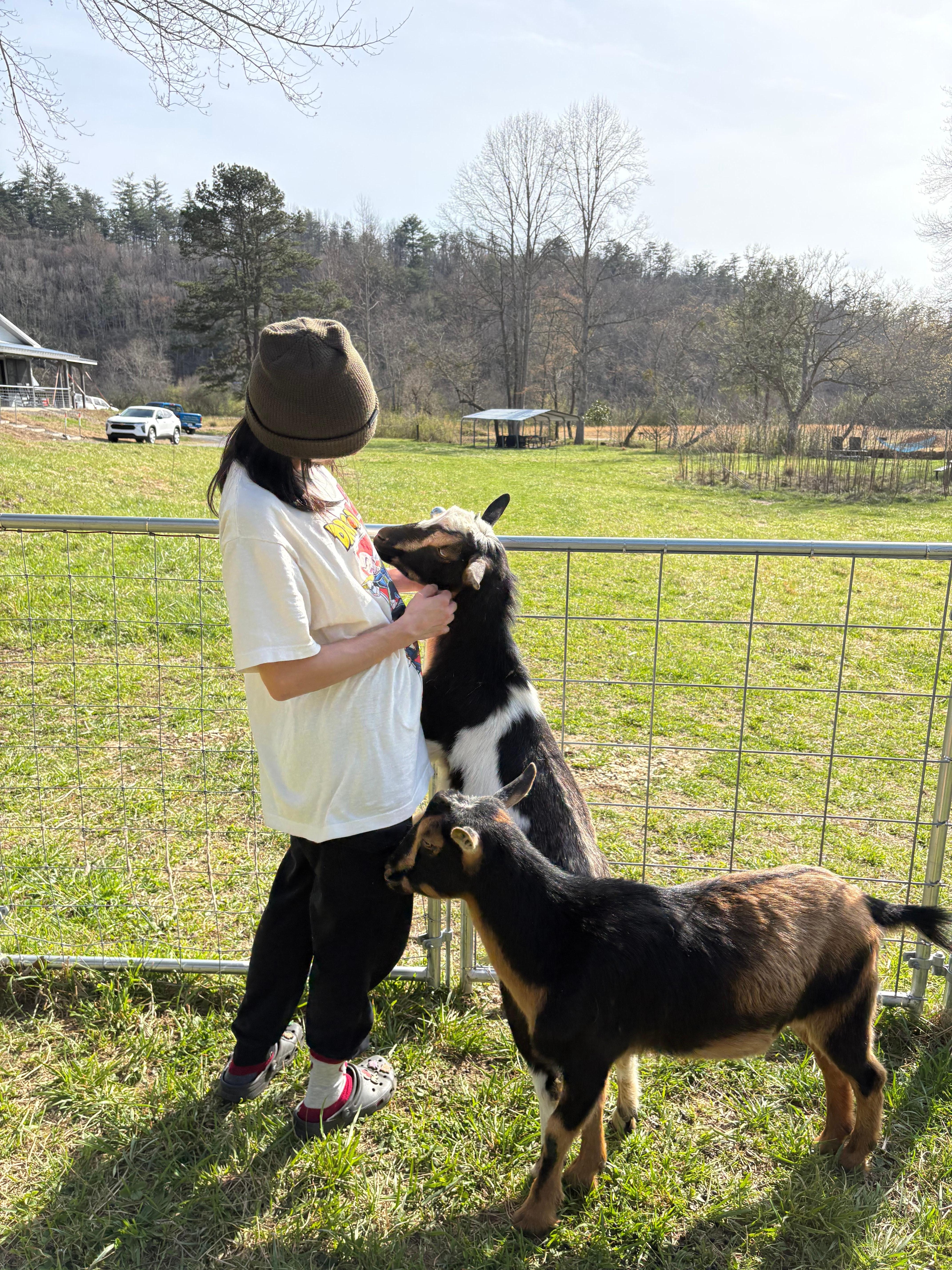 -Friendly goats to greet and play with you