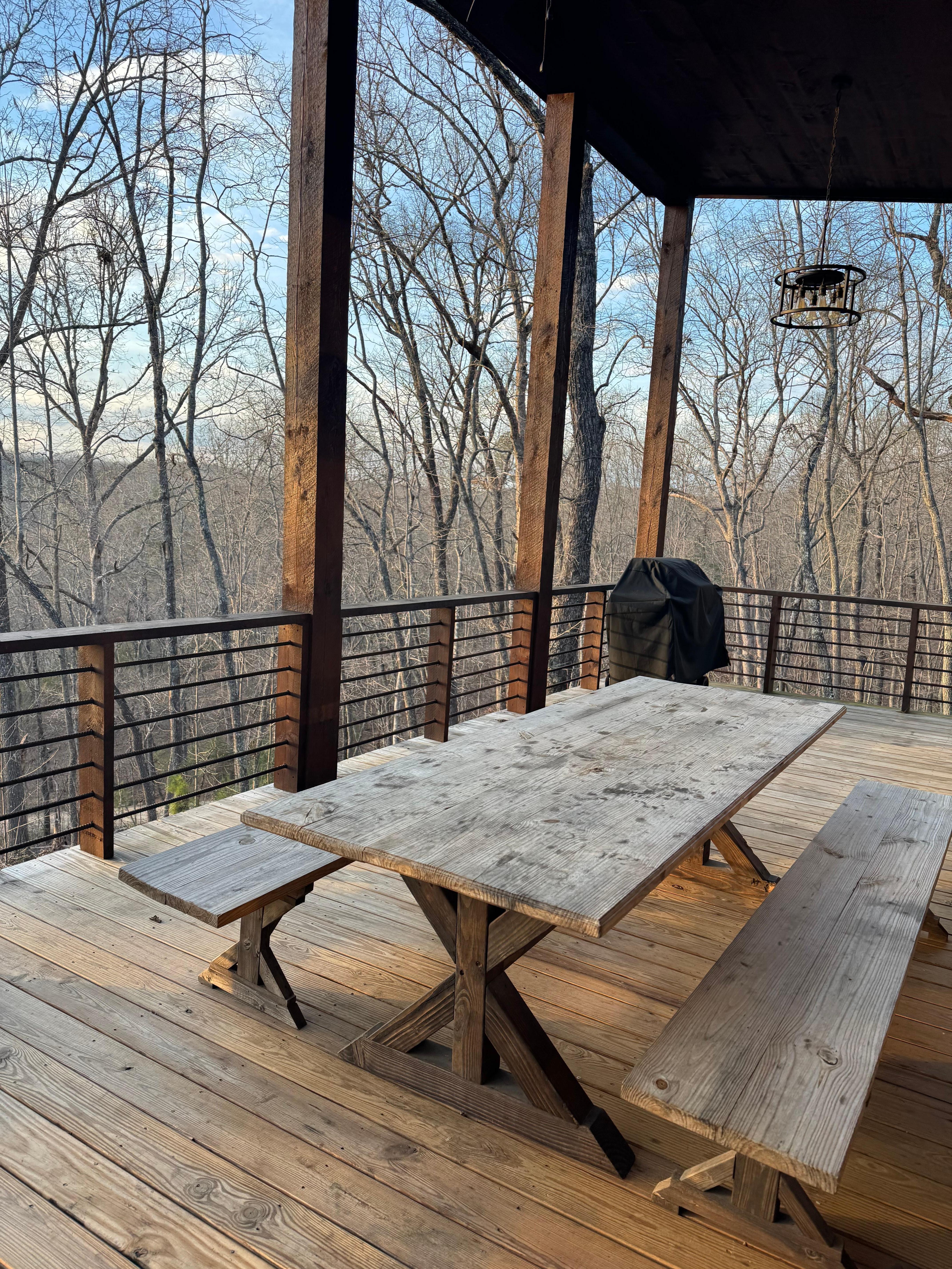 The rooms were clean. The host was easy to reach and helped us quickly with restoring Internet to the house by having a new modem installed for us while we were out of the house. There were a lot of trees around the property, so the leaves hid the mountain views but you could see beautiful sunsets and sunrises over the mountains. The cabin was well laid out and had plenty of amenities. I appreciated that there was toys, books, games, a basketball hoop and balls, and a high chair for our two year old son. The grill was easy to use, and it was nice to sit outside for dinner and drinks. It was within driving distance of Blairsville, Blue Ridge, Dahlongea, Elijay, and Helen.