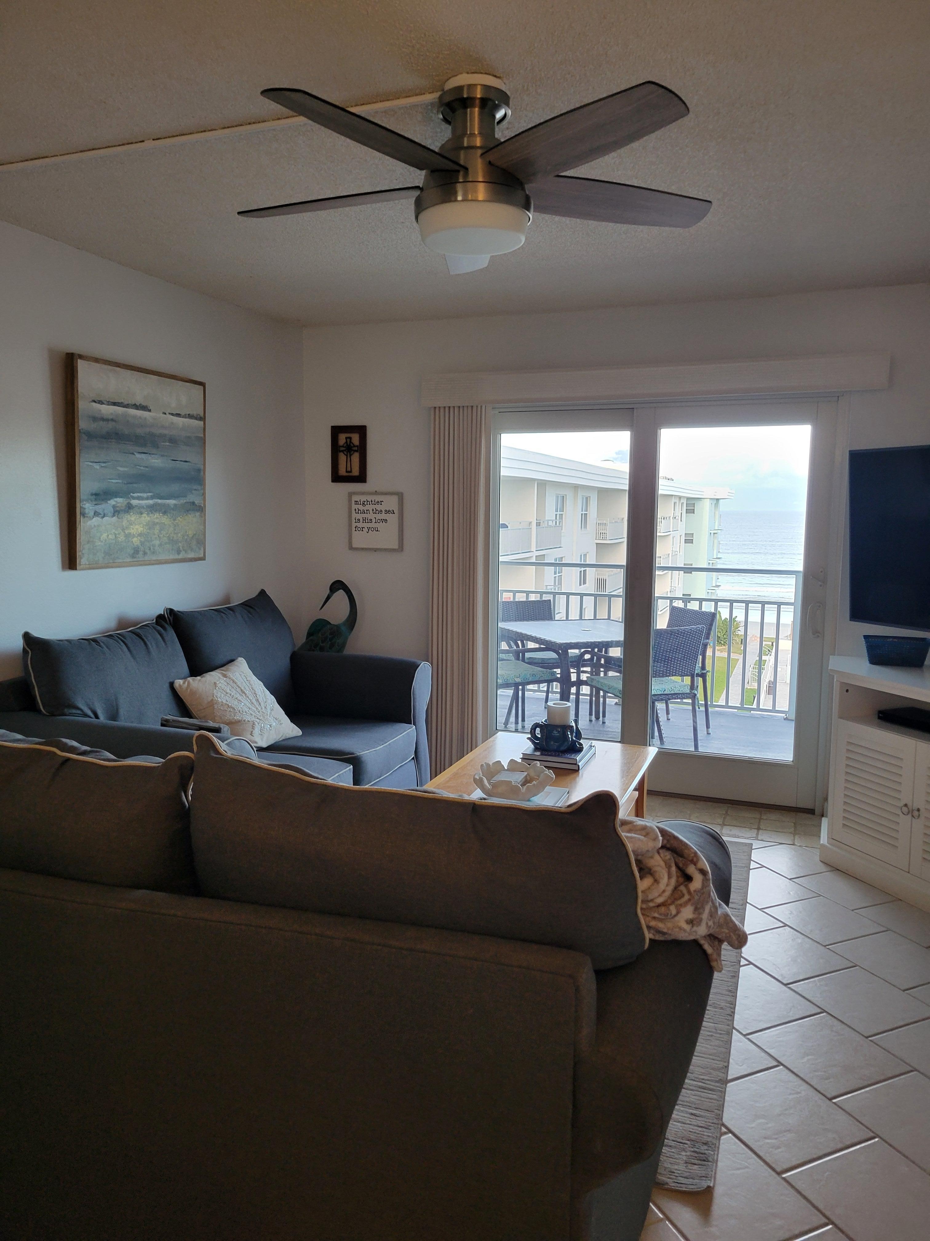 It is our hope to bless it forward and share the condo with others who either desire or need the peace and respite the beach offers. Whether you are seated on the balcony, in the living room, or in the king-size bed, you can see the ocean and hear the waves rolling onto shore. Depending on the time of year, you will be gifted with sunrises as well. You can see stunning views of rocket launches from Kennedy Space Center, if your stay coincides with a scheduled launch. (Our fingers are crossed for you!)