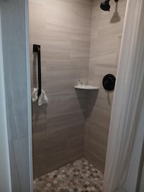 Bathrooms include showers. Televisions come with premium satellite channels.