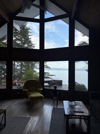 Wonderful spot in a remote location with big windows and deck overlooking the sound. Plenty of open space for lounging (and crawling for our 1-year-old). Well-appointed kitchen. You have to negotiate a steep narrow trail to get to the very cool private beach from which you can see Mount Baker and the Vancouver skyline. Some in our party saw otters and a minke whale. The only drawback to this place was that one bedroom has bunk beds and another is a open loft (great views but less privacy) but the other features more than made up for it.