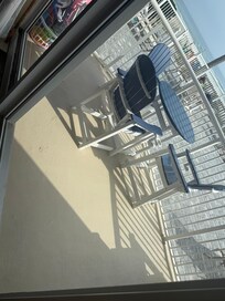 The location was great. The ground floor was great because it was right next to the pool. We could leave things on our patio table and grab it from the pool area when needed. There were beach toys on the patio too which was nice. There were also a couple beach chairs (kind of rusty) and an umbrella. The condo itself could use some updates for sure. The edge of the floors could use some stripping? I assume that it’s flooded before? The smell was not nice when we walked in but once we opened up the patio door it went away. (Smoker smell?) When leaving I went to vacuum the living room with the vacuum in the closet and it smelled like cat urine SO BAD! The counter space was small but it worked for us. We have a family of 5 and the condo was perfect for us. 3 min walk to the beach, heated pool and really close to the parking lot. We lifted up one of the coffee cups to use and it had black gunk all inside of it so whoever is cleaning the place needs to do a little better. Overall, I would give it a 3.5 out of 5. We had fun and it was a good inexpensive place to stay. The owners did text updates a lot which I really appreciate as well.