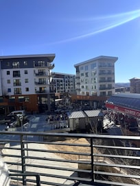 Our home is a coveted corner unit in the Lift Condos with views of mountains, the village vibrancy, and skiers in their element. Our main balcony overlooks the ski beach below, where people gather and enjoy live music and great food. We are conveniently located on the same floor as the pool deck, steam room, and fitness center.