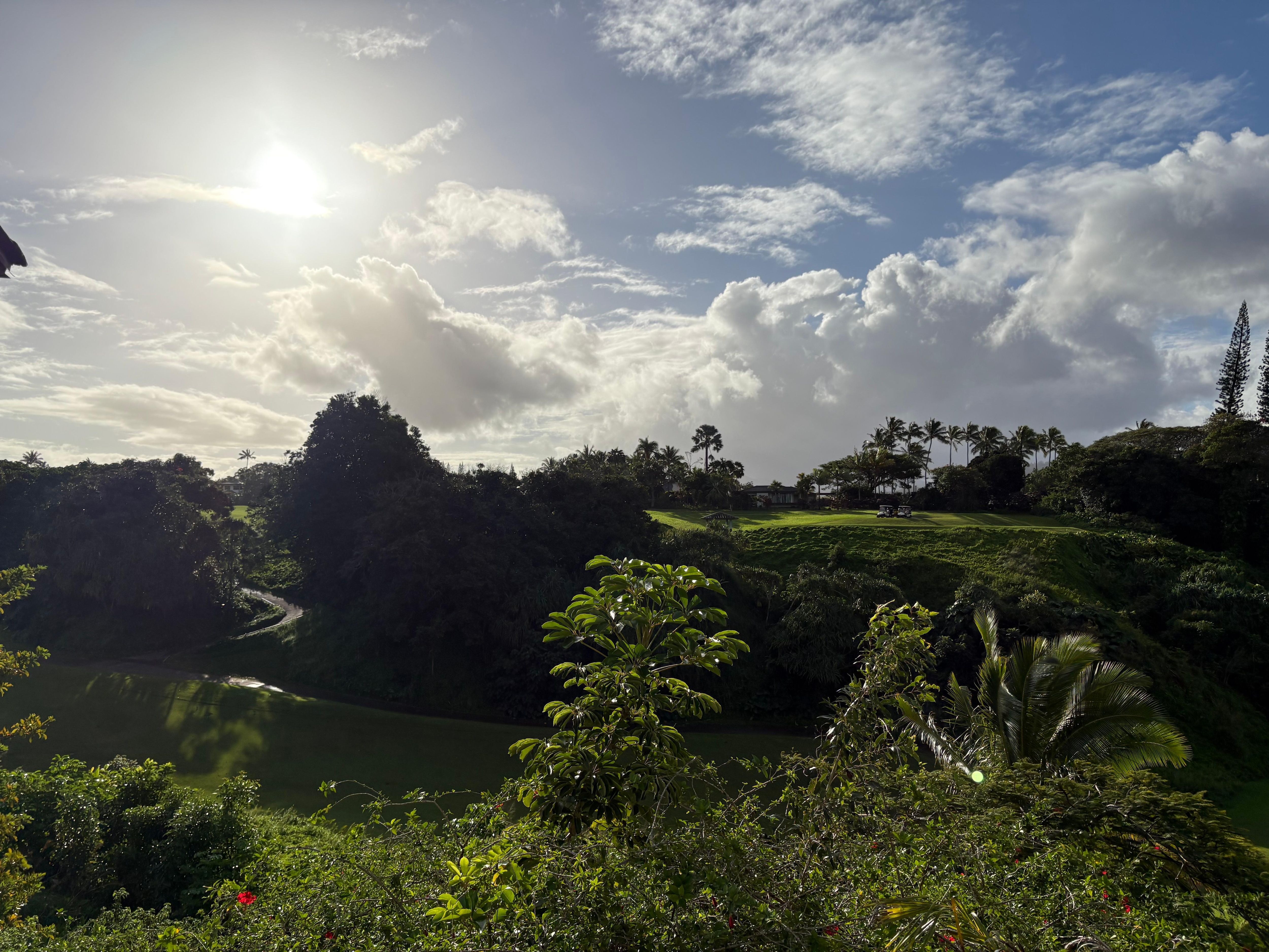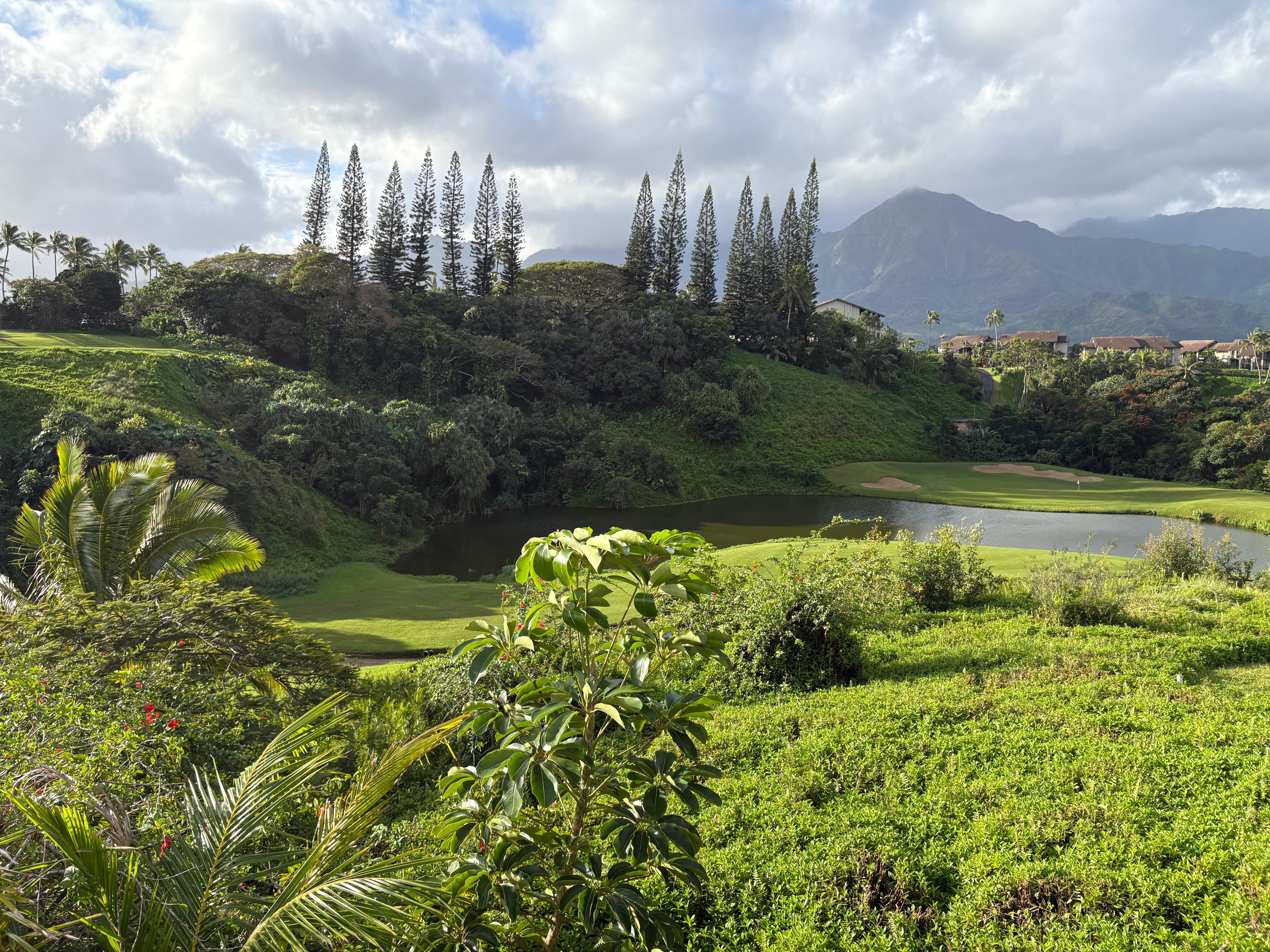 Hanalei Bay Villas #17 is a beautifully remodeled stand-alone condominium. This luxurious bungalow already had panoramic views of Hanalei Bay and the Hanalei Mountains and the interior reflects the beauty of its surroundings. Beautiful travertine tile floors, smooth granite counters, and custom DeWils cabinetry, and sumptuous hotel quality linens all combine to make this one of the most stunning units in the complex. There is walking access to swimming, surfing and snorkeling at the eastern end of Hanalei Bay by way of the newly renovated 1 Hotel Hanalei Bay, located just down the road. The world famous Princeville at Hanalei Makai Golf Course is just a few blocks away, with a couple of the most challenging holes located right in front of this unit. There is an Electric BBQ on the lanai for your enjoyment! You enter this two story unit on the second floor, which features the living, dining, kitchen and covered lanai as well as a half bath. The lower level has three bedrooms (1-king, 1-queen, and 1-double bed), plus two full baths.