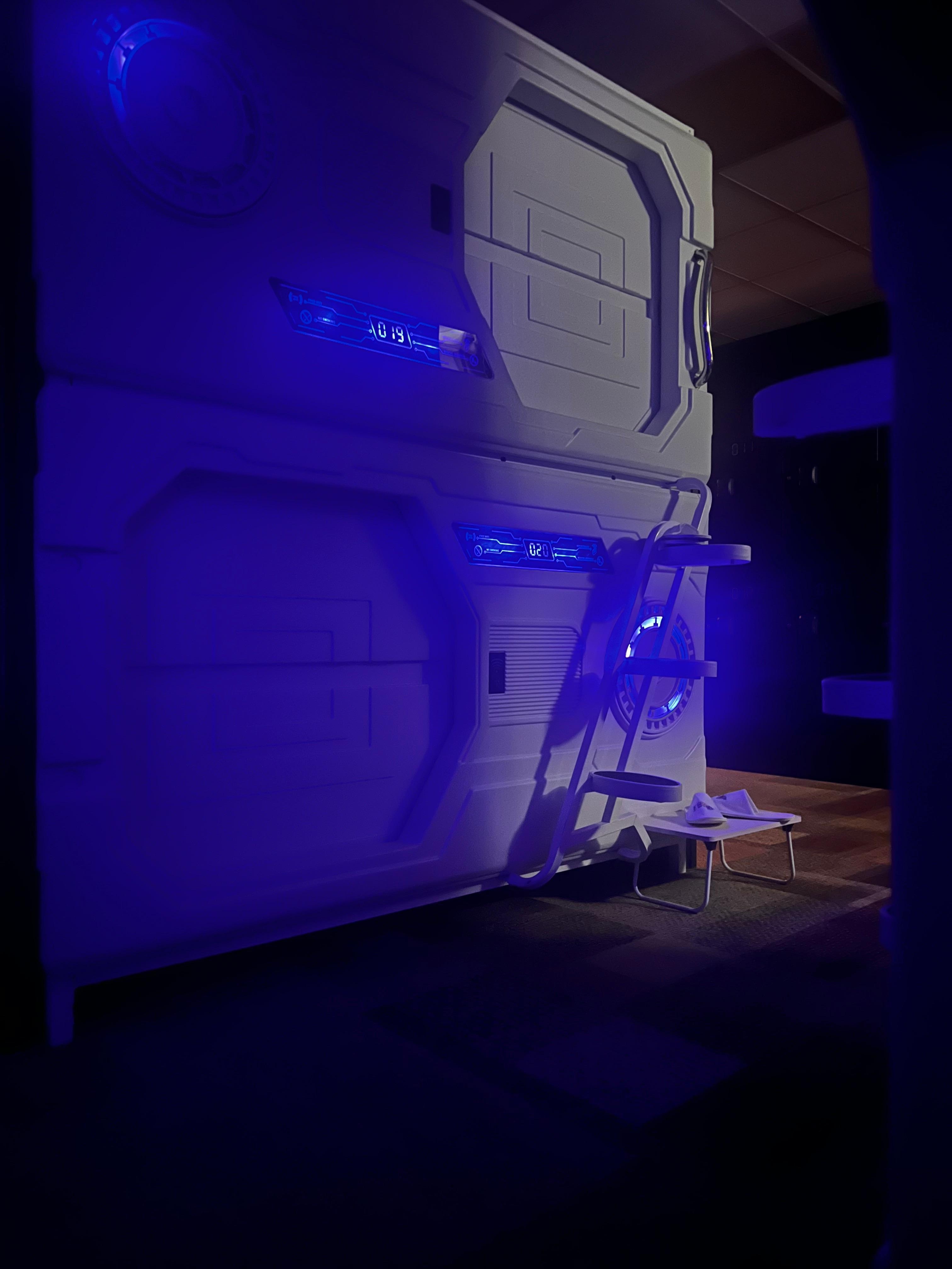 Teh room with the stacked pods