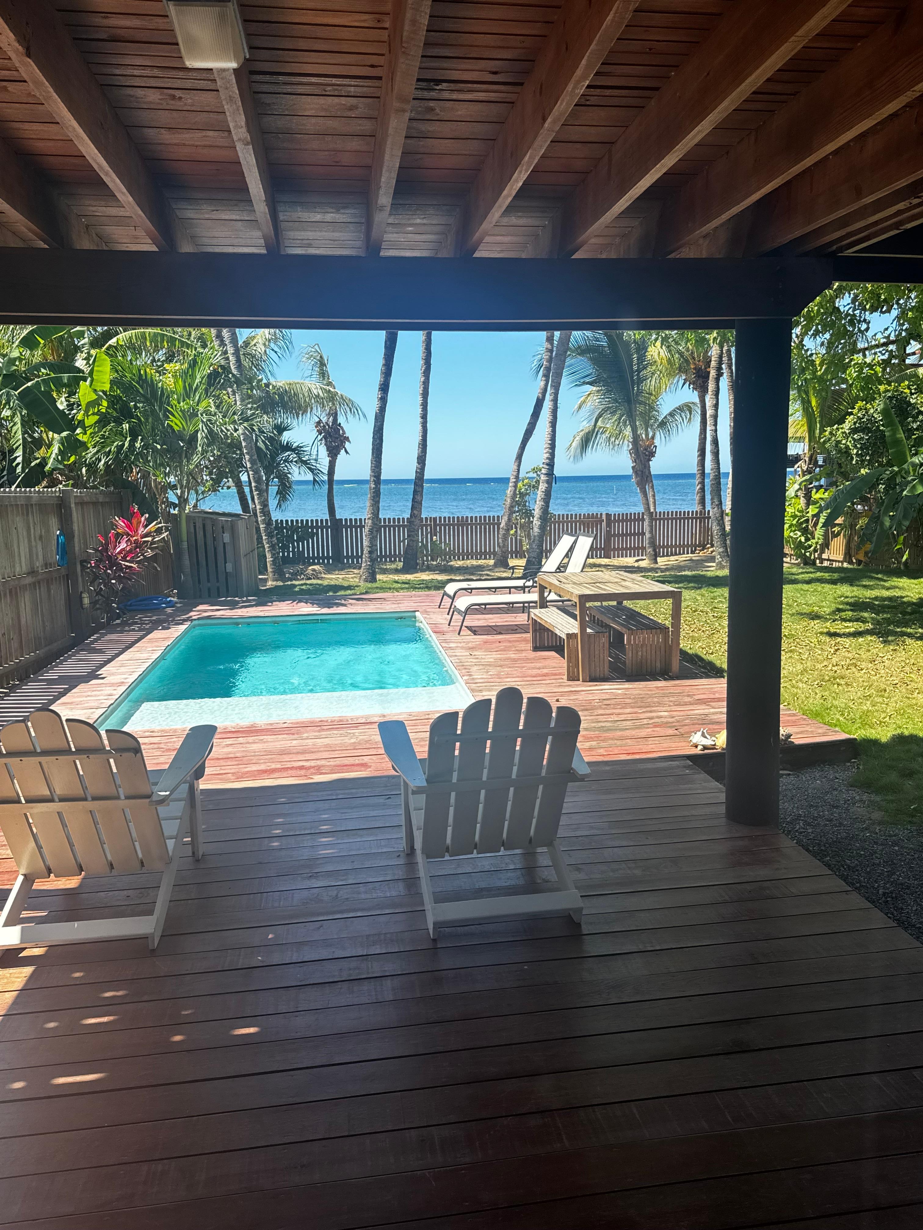 Rinse-off the salt water in the outside shower and enjoy the shade of the coconut trees and Caribbean breezes while lounging poolside. Adjacent to the plunge-pool is a casita featuring a full sized futon and powder room for additional flexibility with your accommodations.