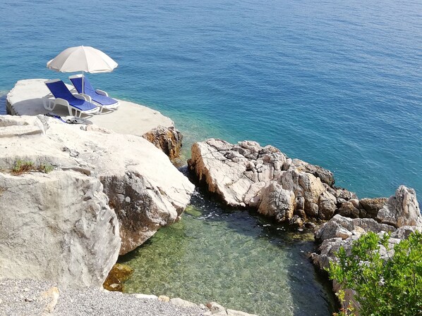 This vacation home is on the beach. Don't forget your sunscreen!