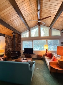 The home was simply adorable and cozy. We stayed this past weekend and woke up to a winter wonderland after the storm. The big windows in the main living room provided a gorgeous view. We stayed with our three children and this home was spacious enough where we didn’t feel crammed. The kitchen was fully stocked with up to date appliances and plenty of counter space. Working Dryer/washer was a huge plus for us to dry our clothes since we packed light. The beds were comfortable with clean spotless bedding (thank you!). We usually bring our own game boards when traveling , but it would be nice if the house provided some non electronic entertainment had we not brought it with us. We have absolutely no complaints and would stay here again. Thank you !