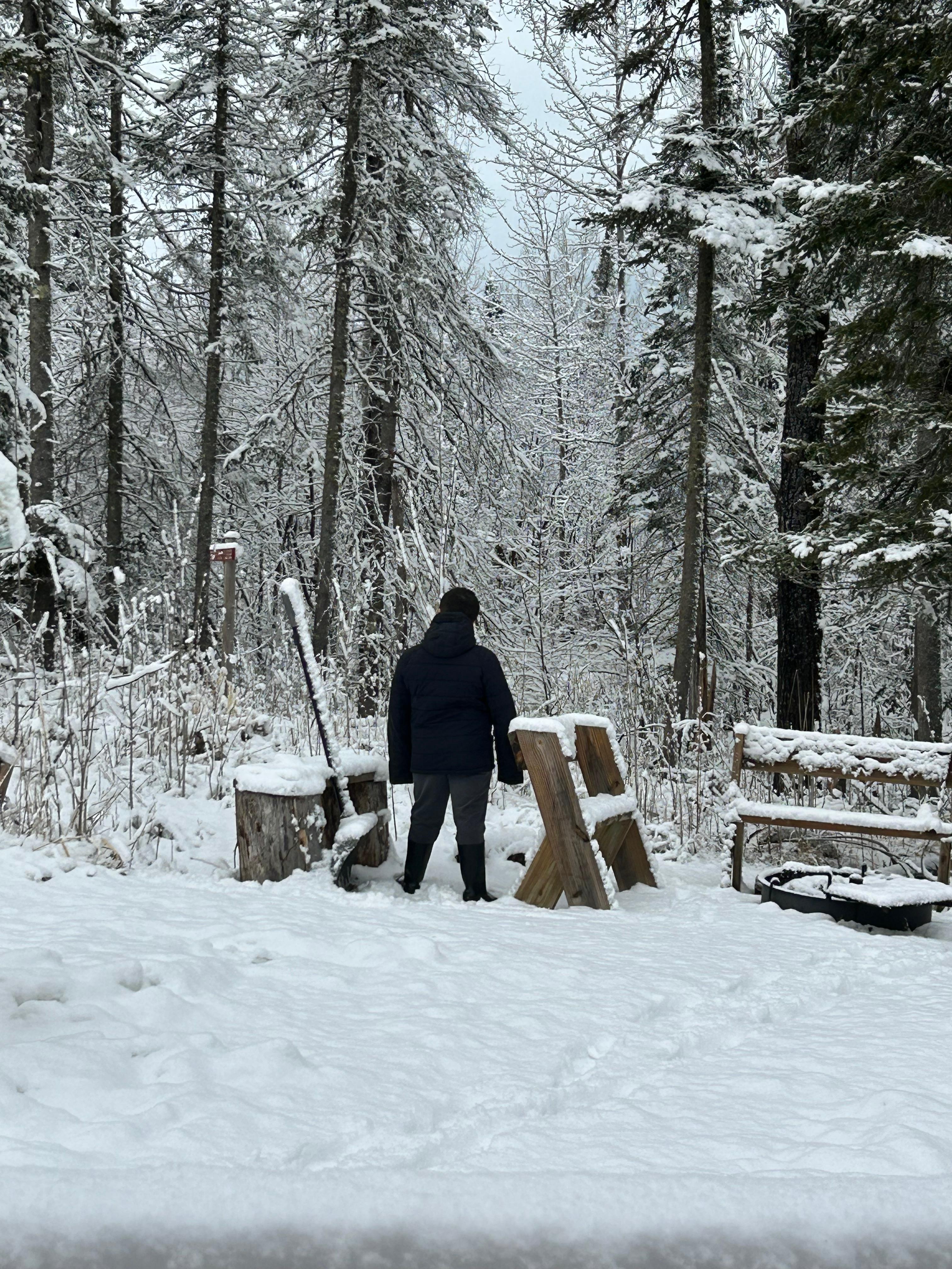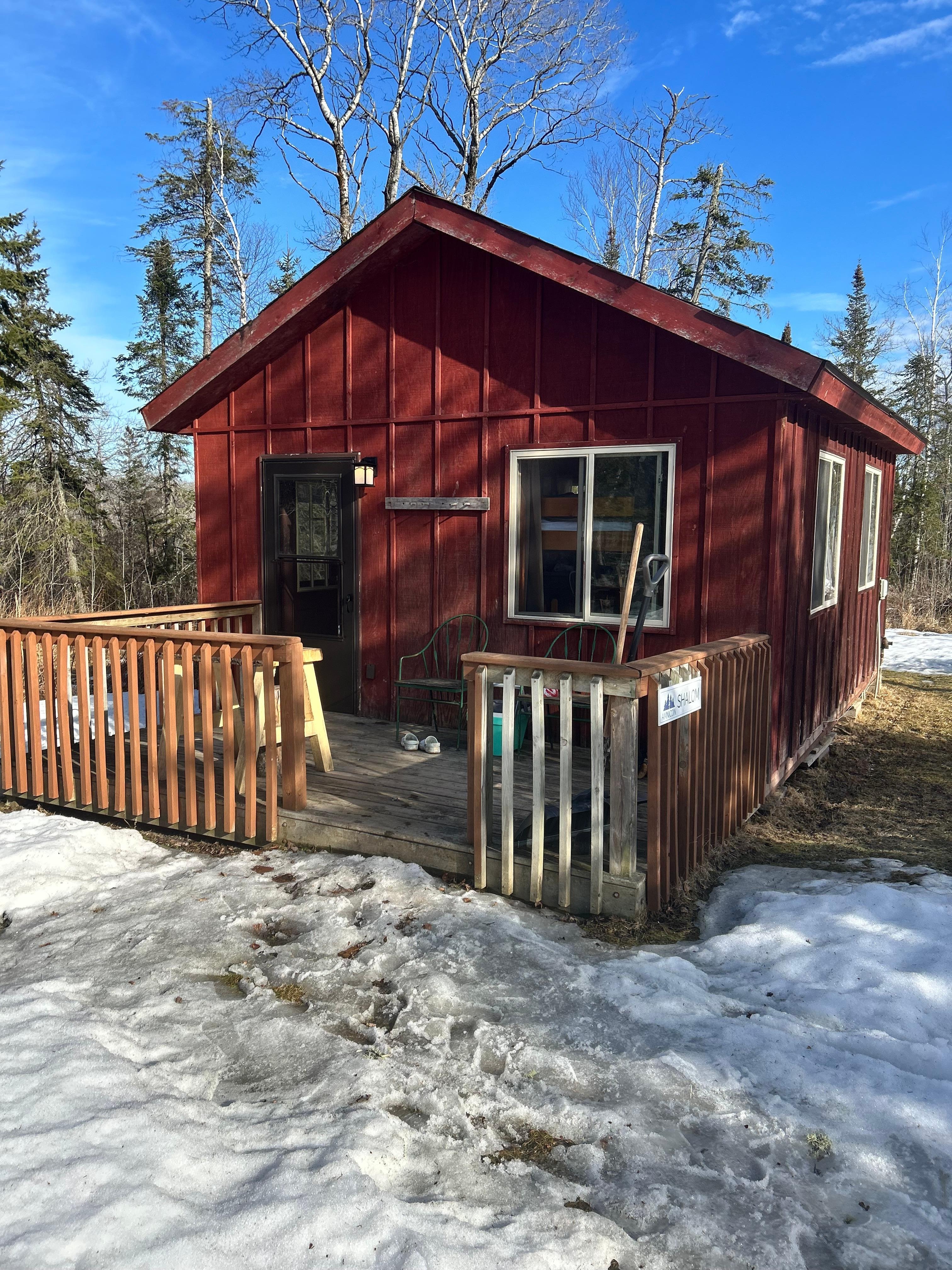 - The cabin is clean, comfortable, and elegant, but still quite rustic. The cabin is available year-round, with a propane fireplace for your main source of heat. It has electricity, but no running water. In the kitchenette is a water dispenser for washing & drinking. Adjacent to the cabin is your own private low-odor outhouse that has a little heater and a light you can turn on from inside the cabin. Just a one-minute walk from the cabin is the main lodge, which has public restrooms for showers and flushing toilets.