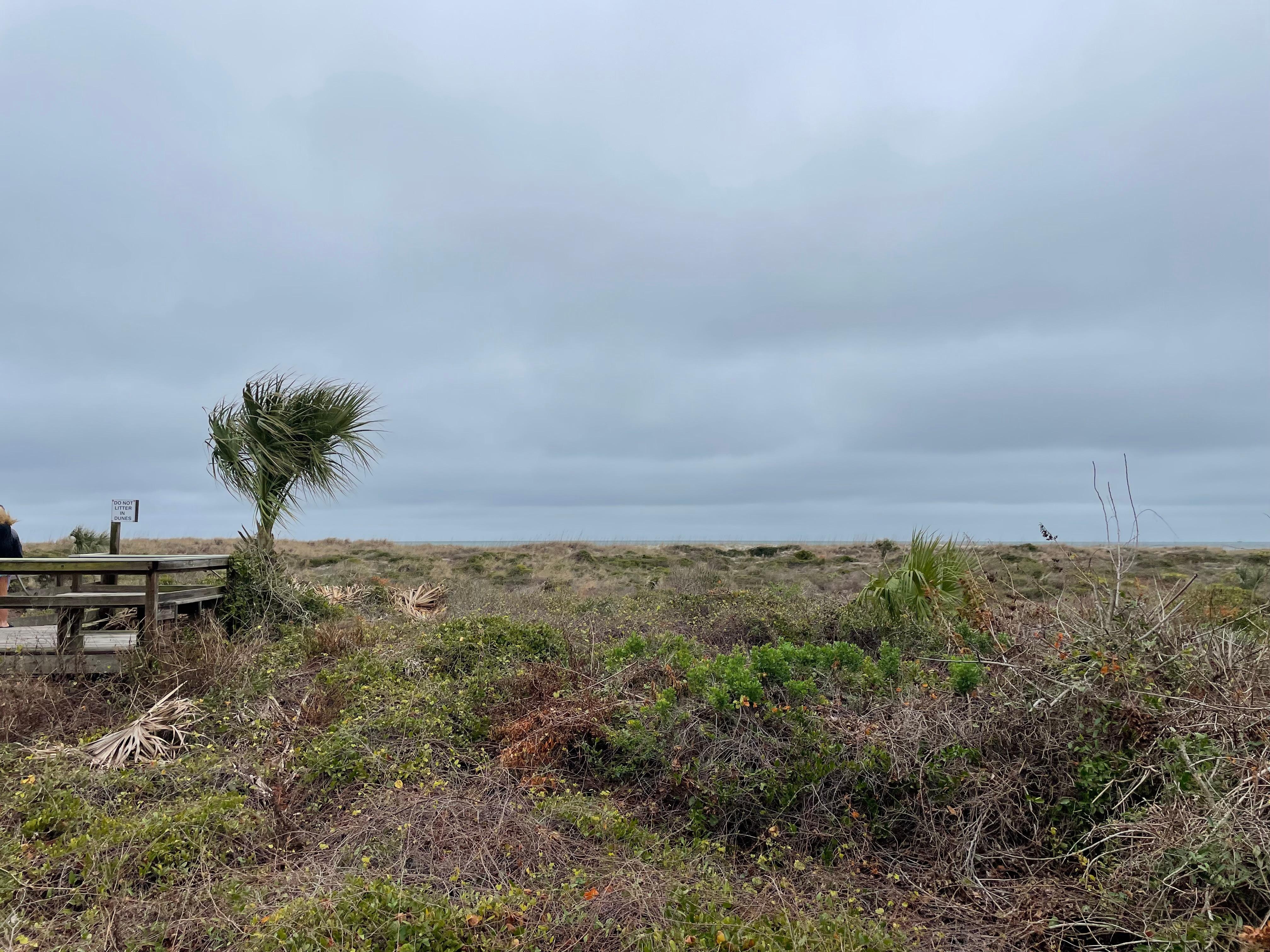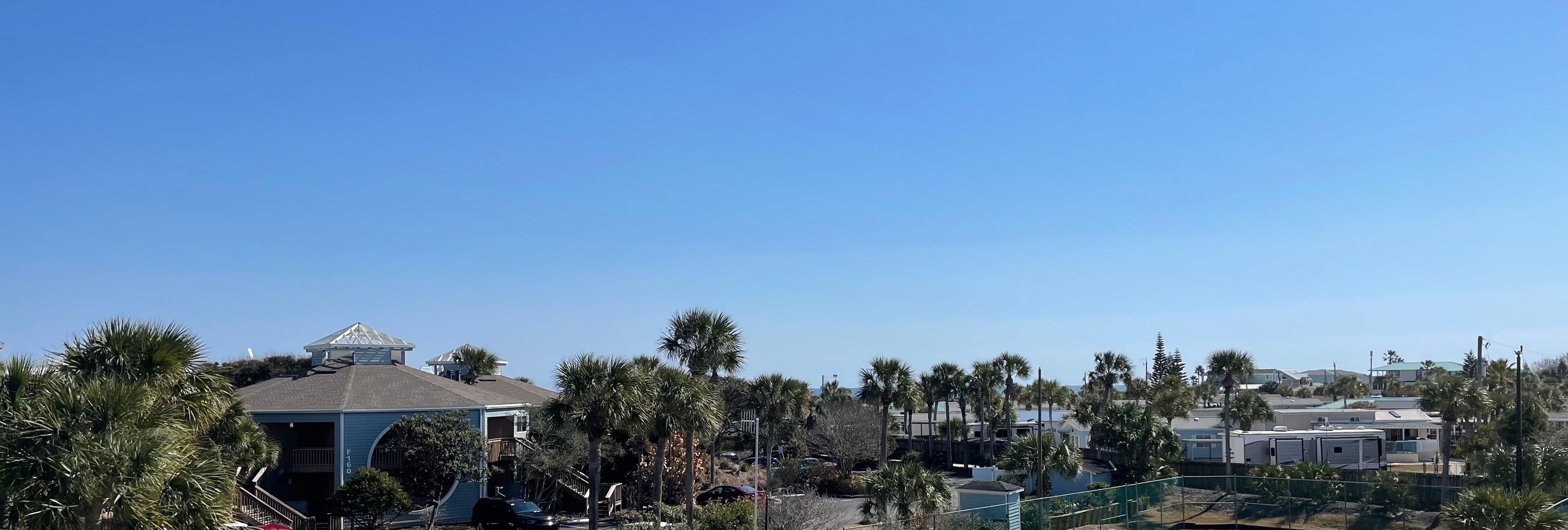 The condo has a front and back deck. At sunrise, if it is a clear day, from the front deck, you can look to the south east, you may be able to see the sun sparkling off of the ocean from between the palm trees.