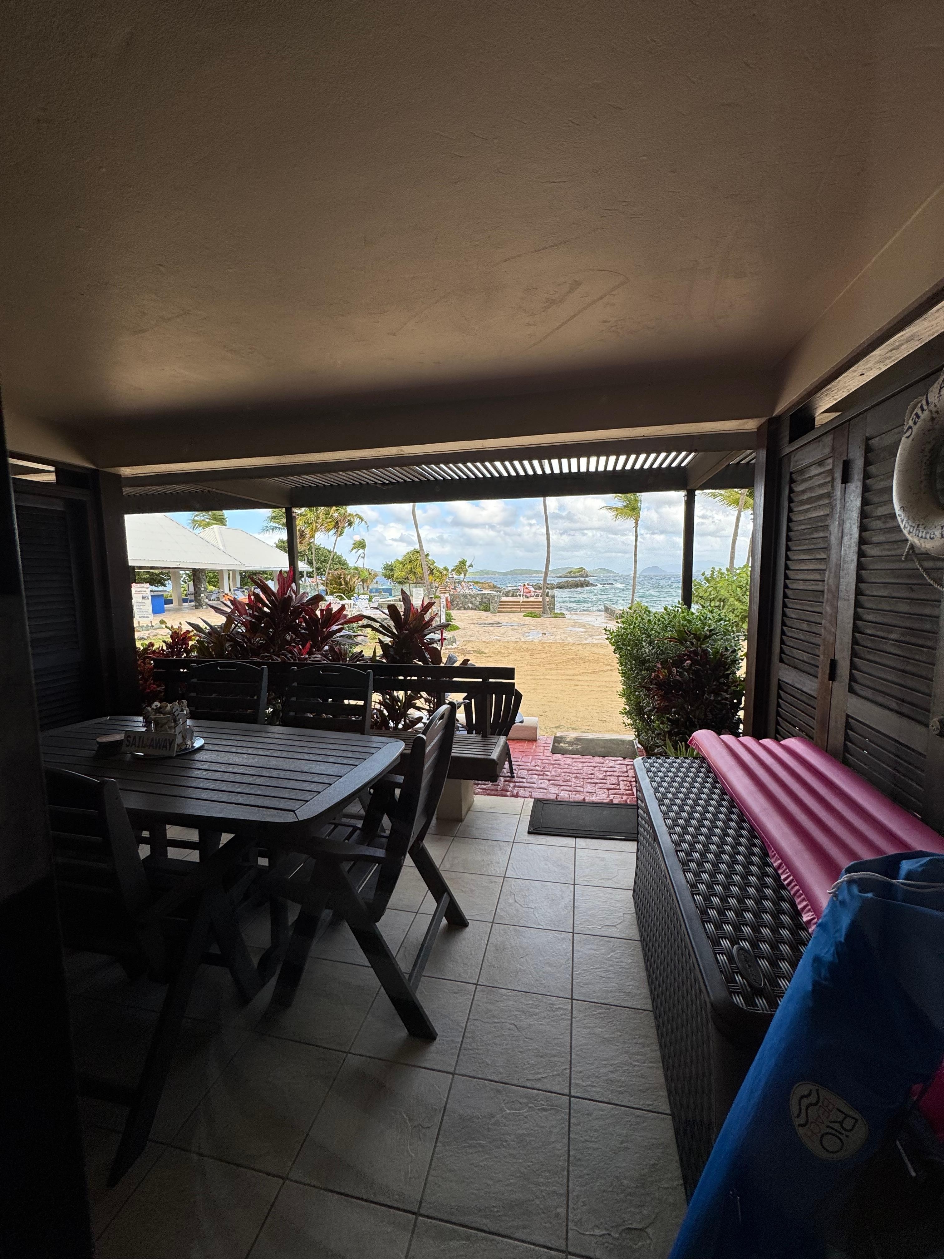 Beachfront and EZ access to the infinity pool from your doorstep. Spacious patio overlooking one of the Caribbean’s most beautiful beaches-Sapphire Beach. The location will amaze you!