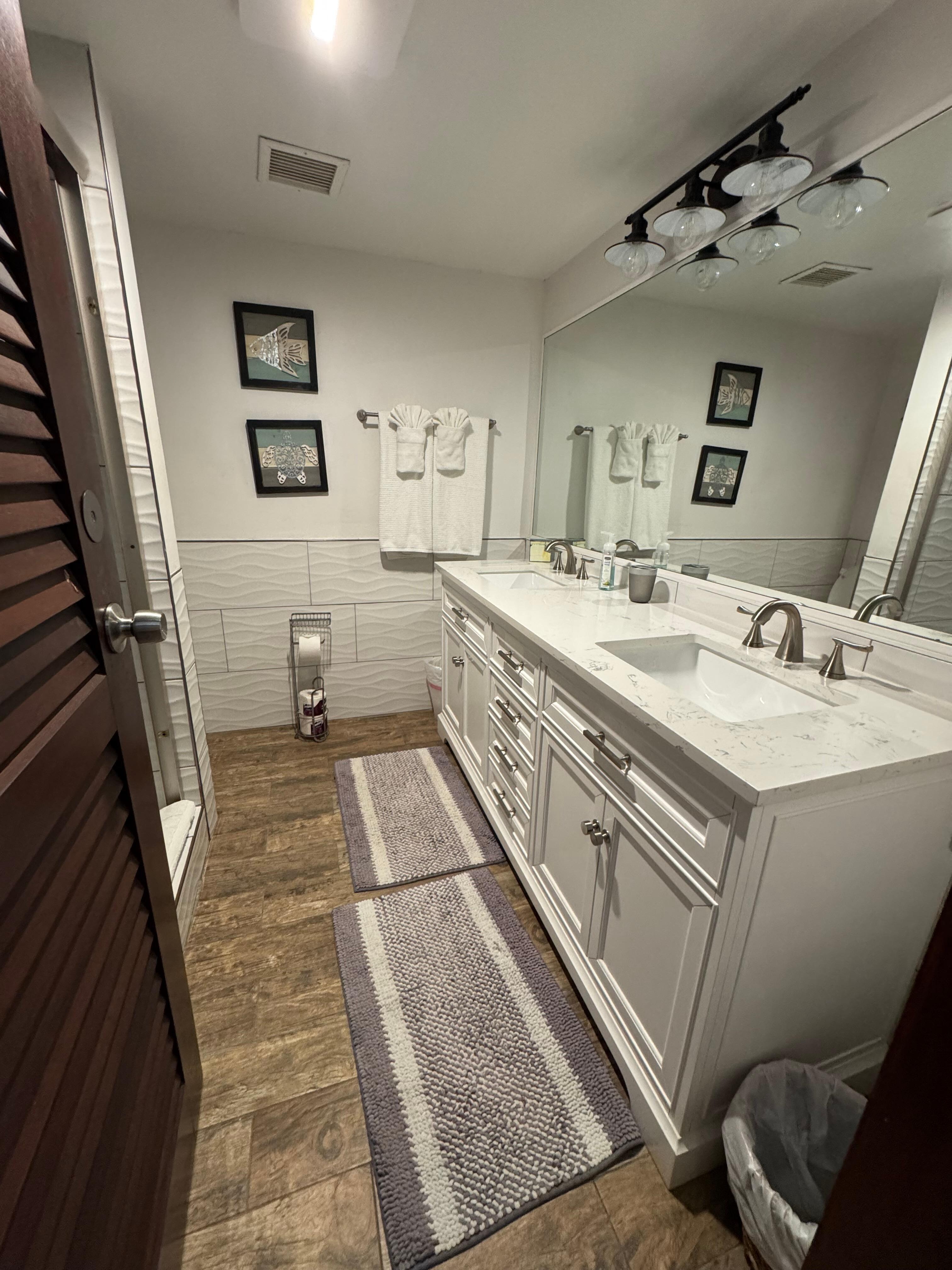 -Bathroom counter-space galore