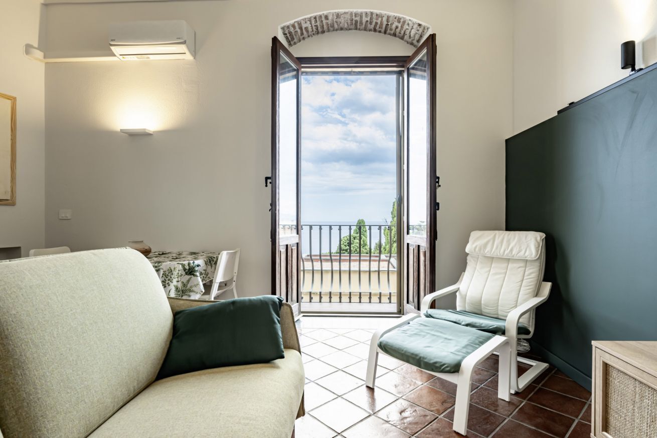 Cozy 73 sqm apartment on the first floor (no elevator), ideal for 4 guests. It features a bright living room with balcony, a fully equipped kitchen, and all the comforts for a pleasant stay. Located just a few minutes’ walk from Taormina’s historic c