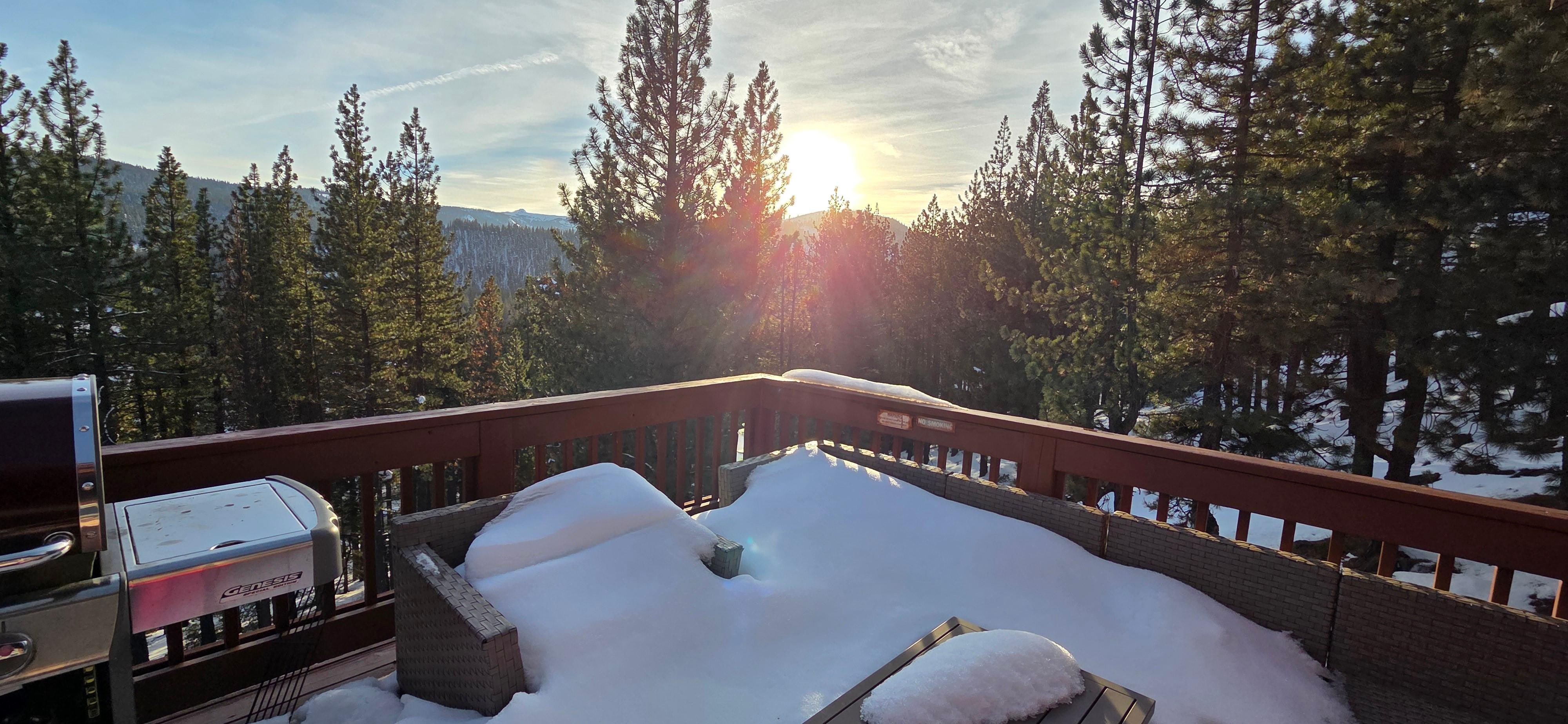 You can enjoy a glass of wine on one of the four decks. There's also a large, gas powered outdoor grill on the main deck. You can gaze at the wonderful view whilst relaxing in the hot tub which is located on one of the lower decks. Alternatively, just relax by the stove heaters or in the downstairs studio recreation room, playing pool on the beautiful pool table which can also be converted to a ping pong table, or just reading a book. Or simply take advantage of the number of outdoor activities just beyond your doorstep that Truckee/Tahoe has to offer.
