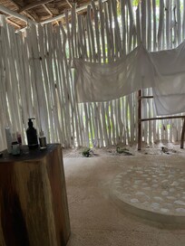 Absolutely beautiful property. The staff was so nice and always went above and beyond to help us. Reyes and Jorge at the beach were great; lots of tequila shots and really yummy French fried. Mau and Julio at the front desk were the best - they were super helpful when assisting us in extending our trip an extra night as our flight was canceled back home bc of snow!! Hotel grounds were never super crowded and we never had an issue getting chairs or beds on the beach. Quiet, peaceful and luxurious. Bathrooms do lack privacy as they are outdoors and only a wall made of twigs separates you from the elements. However, it was literally the only thing I would change if I could!!