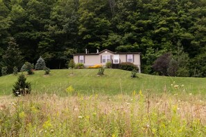 Each of the 3 bedrooms feature a Smart TV, offering a range of entertainment options at your fingertips. Outdoors you’ll enjoy privacy on 15 acres, a large deck with lounge chairs, gas grill with dining area and firepit perfect for outdoor gatherings.