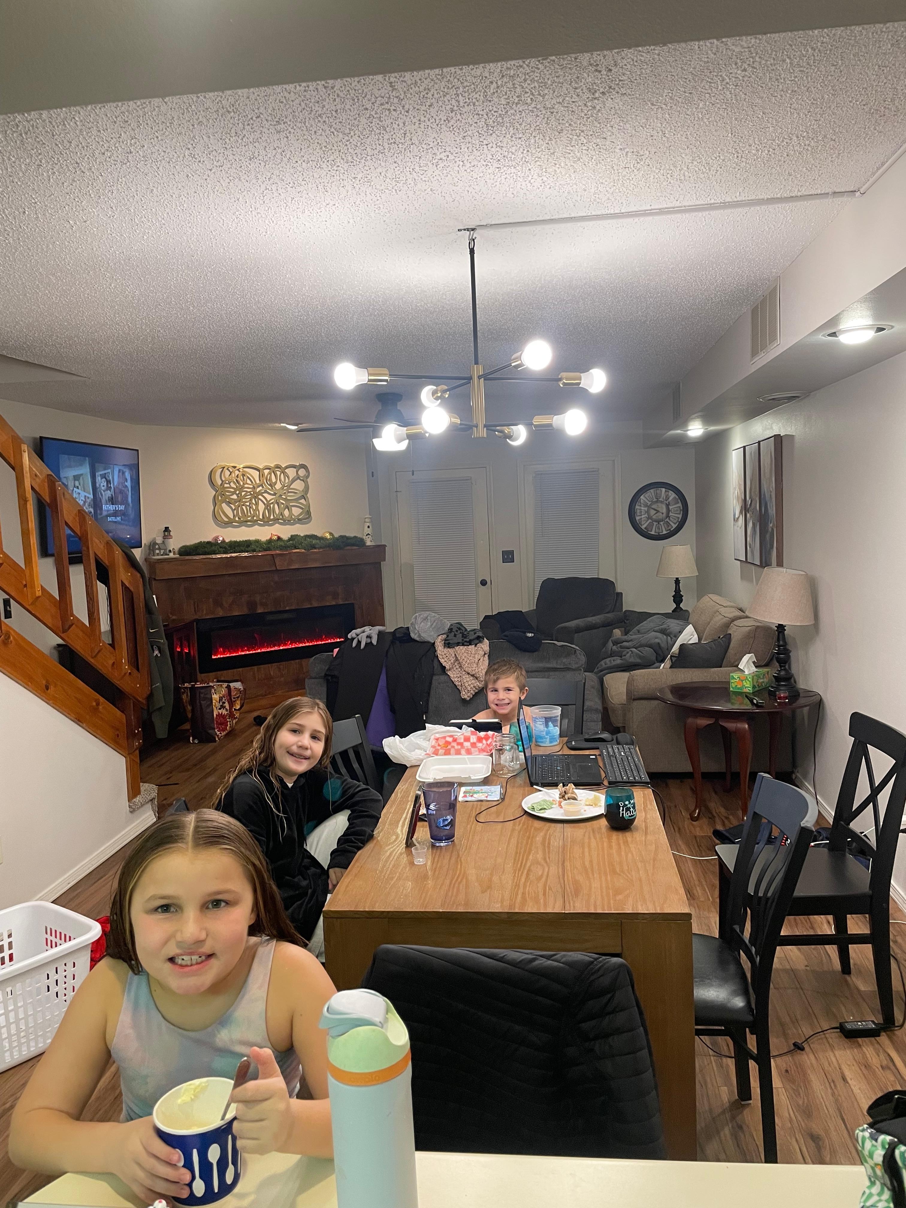 Family room has a modern electric fireplace for added warmth & ambiance, large smart TV with Spectrum cable and a sound bar for playing music with your favorite apps. There is also a laundry closet with a washer & dryer for your use.
