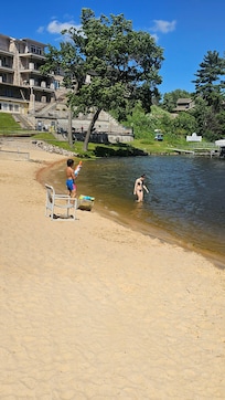 Waterfront condo with resort amenities, grill, firepit, jetted tub, & partial AC