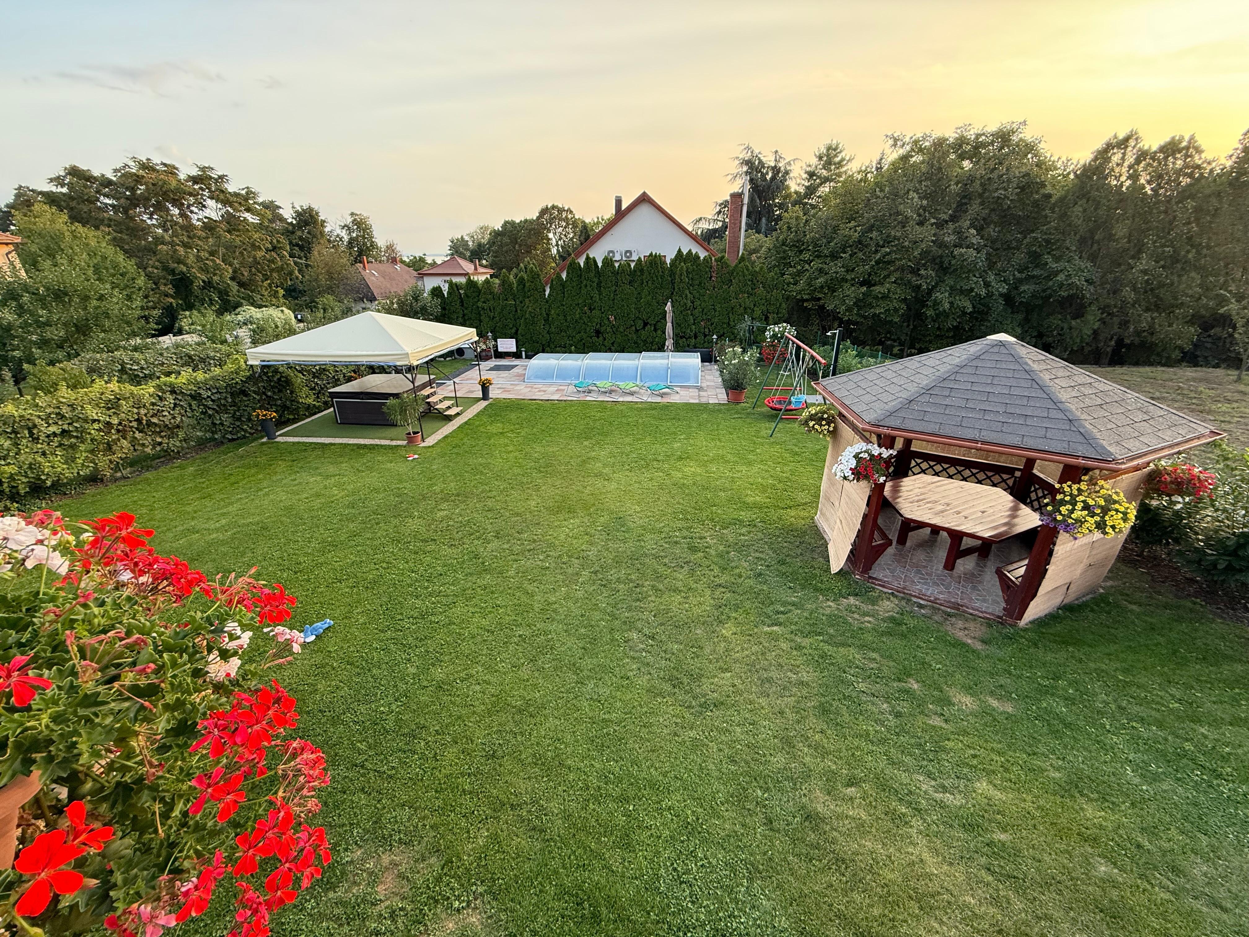 Balatonfűzfő. La casa vacacional moderna (año de construcción 2014) se encuentra separada, en una zona residencial y en una tranquila y una soleada ubicación. El acceso se realiza por una calle secundaria (asfaltado). Aparcamiento en la propiedad (para 3 coches). Puertas automáticas y enfoque automático de la puerta del garaje. Compras 700 m, restaurante 200 m, centro de la localidad 700 m. farmacia en Balaton Gyógyszertár 2 km. piscina cubierta en Balaton uszoda 2 km. estación de tren en Buszpályaudvar 3,5 km. médico en Dézsi Csaba Zoltán 350 m. banco en OTP bank 5 km. Línea ferroviaria 500 m. carretera principal 250 m. parque infantíl 300 m. tobogán de verano y el parque de aventuras de 2 km.