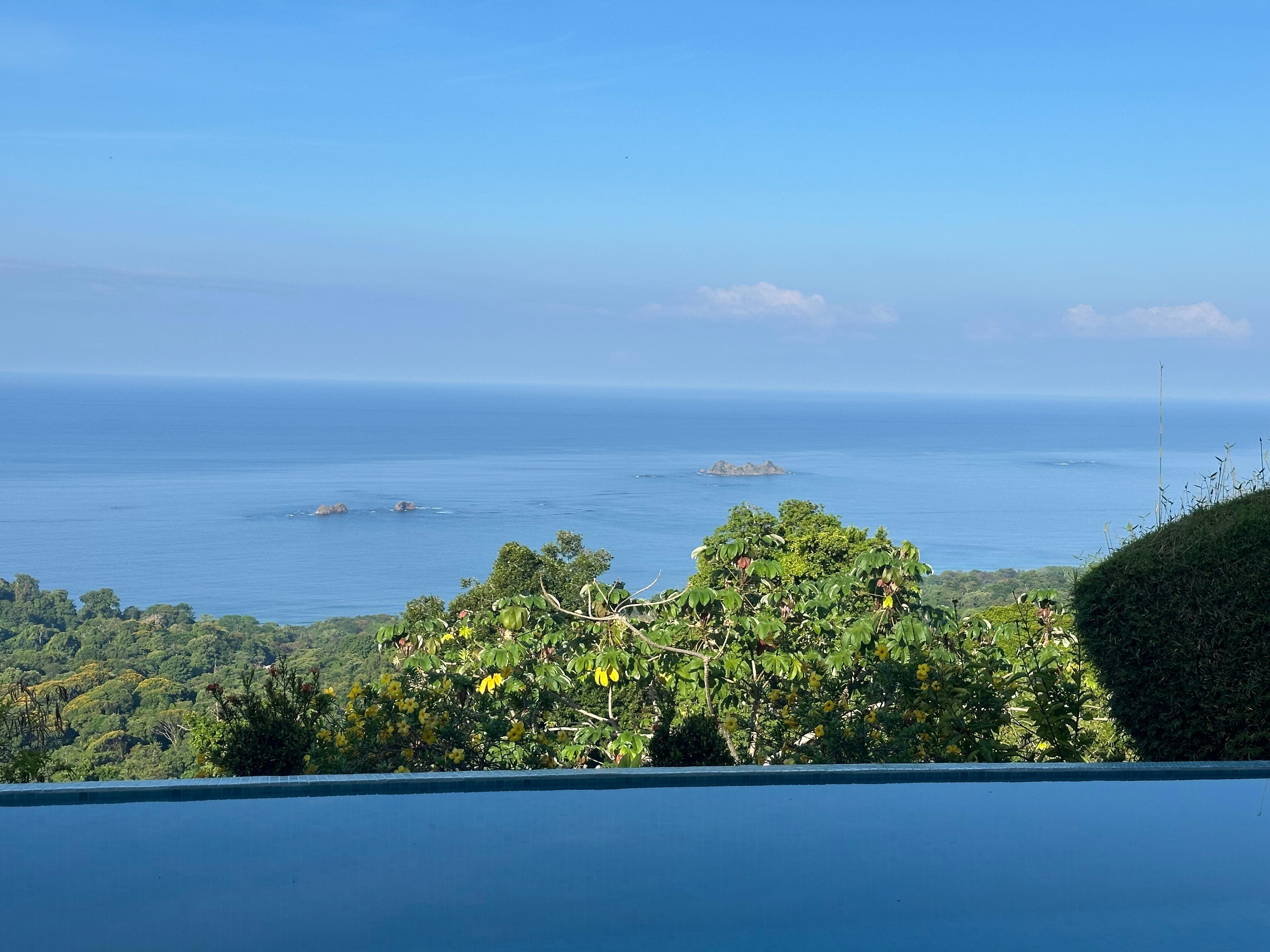 The photos of this villa look amazing, so our expectations were high. Of course, you never know for sure until you arrive. The reality was far better! Which is really quite something. We needed a few days total relaxation after a very active two weeks exploring other parts of Costa Rica. So, we definitely felt extremely lucky. Correspondence with Chris beforehand was straightforward and he was most helpful. Gregori met us and guided us up the steep but, with a 4 wheel drive vehicle, perfectly manageable hill. When we were shown round, we were blown away by the beautiful views out across the ocean. "Curve of the earth" seems very apt.You can see the whale's tail and Cano Island. The villa is very comfortable and very well designed. The two bedrooms are at either end of the villa, so very private, and both benefit from a lovely outlook. The property is very well equipped. The garden is secluded, with discrete hedging and gorgeous flowers. Comfortable sofas outside were where we spent a lot of time. However, the pool was probably one of the best we have experienced. Great for swimming lengths or just relaxing. We had a few questions during our stay, each time receiving a prompt response. Chris obviously wants guests to have a wonderful stay. Some days we just decided to stay and enjoy all the comfort and amenities. The whirlpool was fab. We'd highly recommend staying here, you can never tire of the views, flowers & wildlife.We were so impressed, just blown away, thank you!