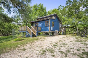 The spacious deck wraps around most of the cabin, and you can admire the surroundings in the hot tub there-it's a great spot for stargazing! Take a swim in the creek, coast on the water with the provided floats, try your hand at some catch-and-release fishing, or scope out the birds and wildlife that visit the property. There's a charcoal grill for your use here, and hot tub and/or swimming towels and biker rags are also provided. Speaking of which, the surrounding roads are perfect for a scenic tour of the Hill Country! Pets are welcomed here, but please keep them leashed and don't leave them unattended at any time during your stay. Smoking is allowed, but outside only.
