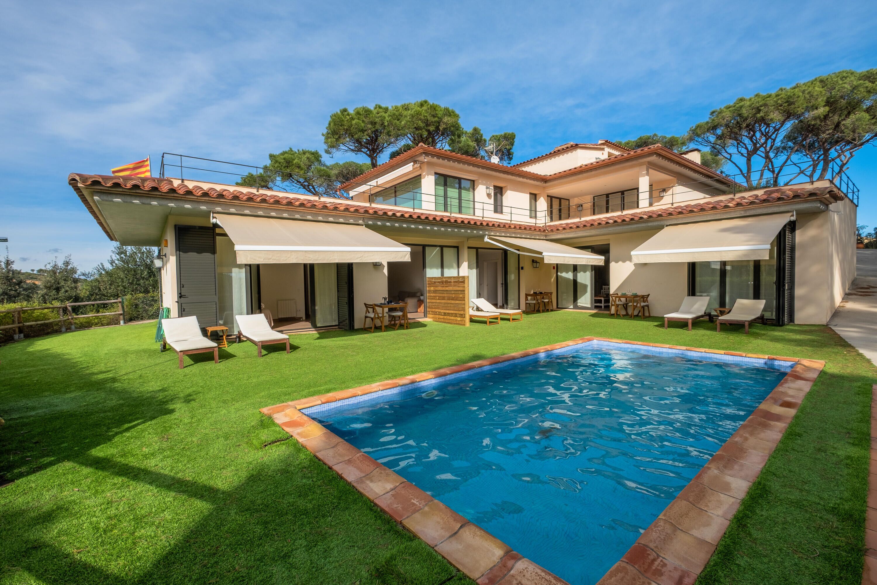 Nuestra casa es el lugar ideal para pasar unos días de relax y diversión en el corazón de la Costa Brava. Es abierta, espaciosa, y le da el sol todo el día. Se accede a la vivienda desde una gran terraza con porche. Dispone de 4 dormitorios dobles en 2 plantas con capacidad para 10 personas, 2 baños completos y una amplia sala de estar que da a otra terraza frente al bosque en la que se puede cenar contemplando las maravillosas puestas de sol de la zona. Desde ella se desciende al jardín / solárium, donde instalamos una piscina cuando llega el buen tiempo. El aparcamiento frente a la casa está siempre disponible, porque más allá de nuestra casa empieza un extenso bosque de pinos. Solicitamos a nuestros huéspedes que respeten el descanso de los vecinos, porque es una zona muy tranquila. El pueblo de Begur está adherido al movimiento "slow" por una vida desacelerada y el respeto a las normas básicas de convivencia. Estamos en una zona muy bien comunicada con el pueblo y los lugares turísticos de los alrededores. A muy corta distancia está el Parc de l´Arbreda, zona de ocio infantil muy animada en verano y supermercado. Un corto paseo nos lleva al centro del pueblo: tiendas con encanto, restaurantes, dispensario médico, cine, sala de exposiciones, piscina municipal... todo muy cerca y accesible. Desde nuestra casa se puede acceder a multitud de playas y calas a 5-10 minutos en coche propio o en el servicio local de microbuses. Estación de tren a 30 minutos, dirección Francia o Barcelona. Aeropuerto de Girona a 45 minutos y de Barcelona a 1 hora y media.