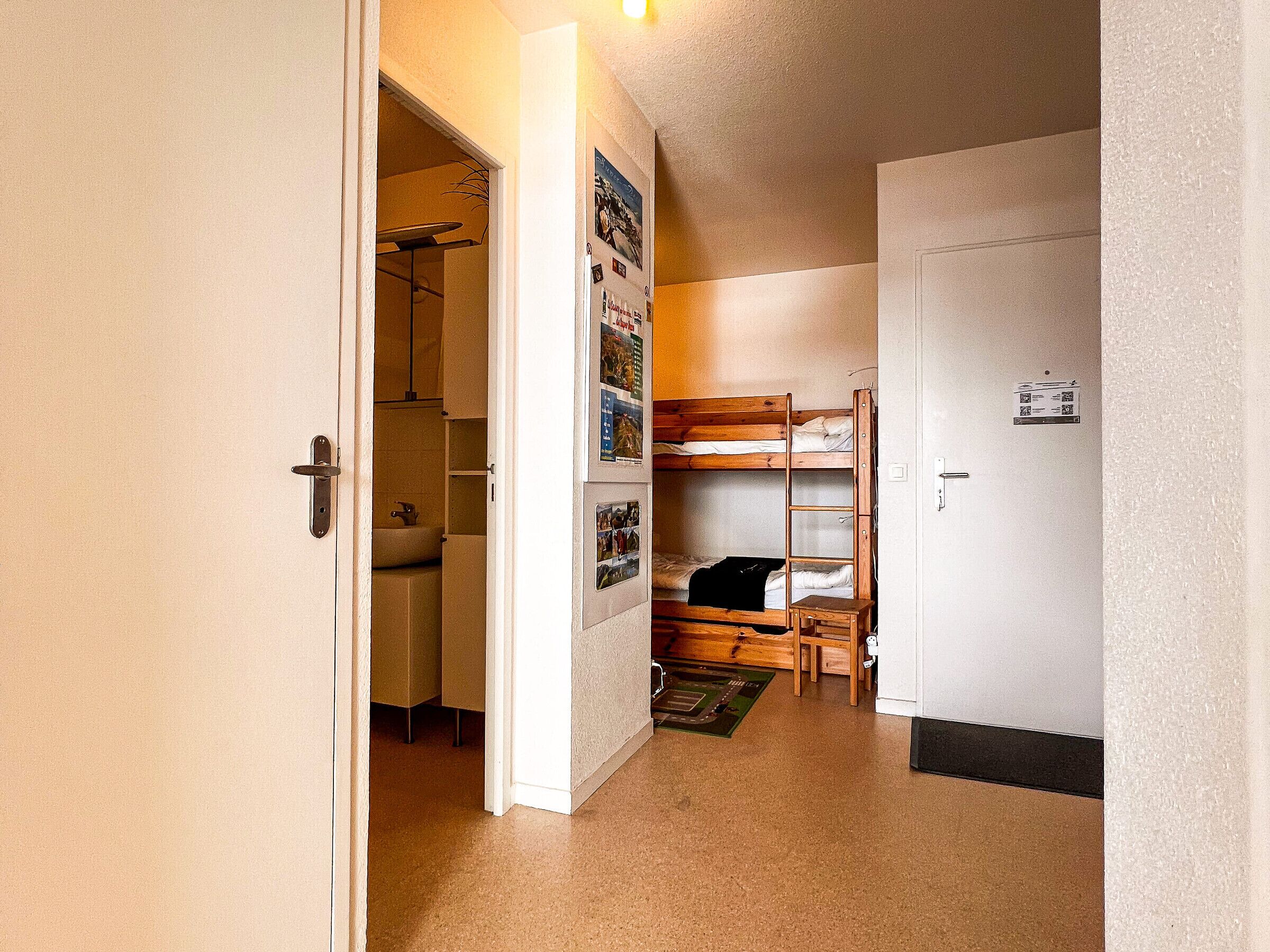 2 dormitorios para noches de descanso después de esquiar. Ducha moderna a ras de suelo Cocina equipada: lavavajillas (porque en vacaciones no lavamos los platos) + práctica lavadora.