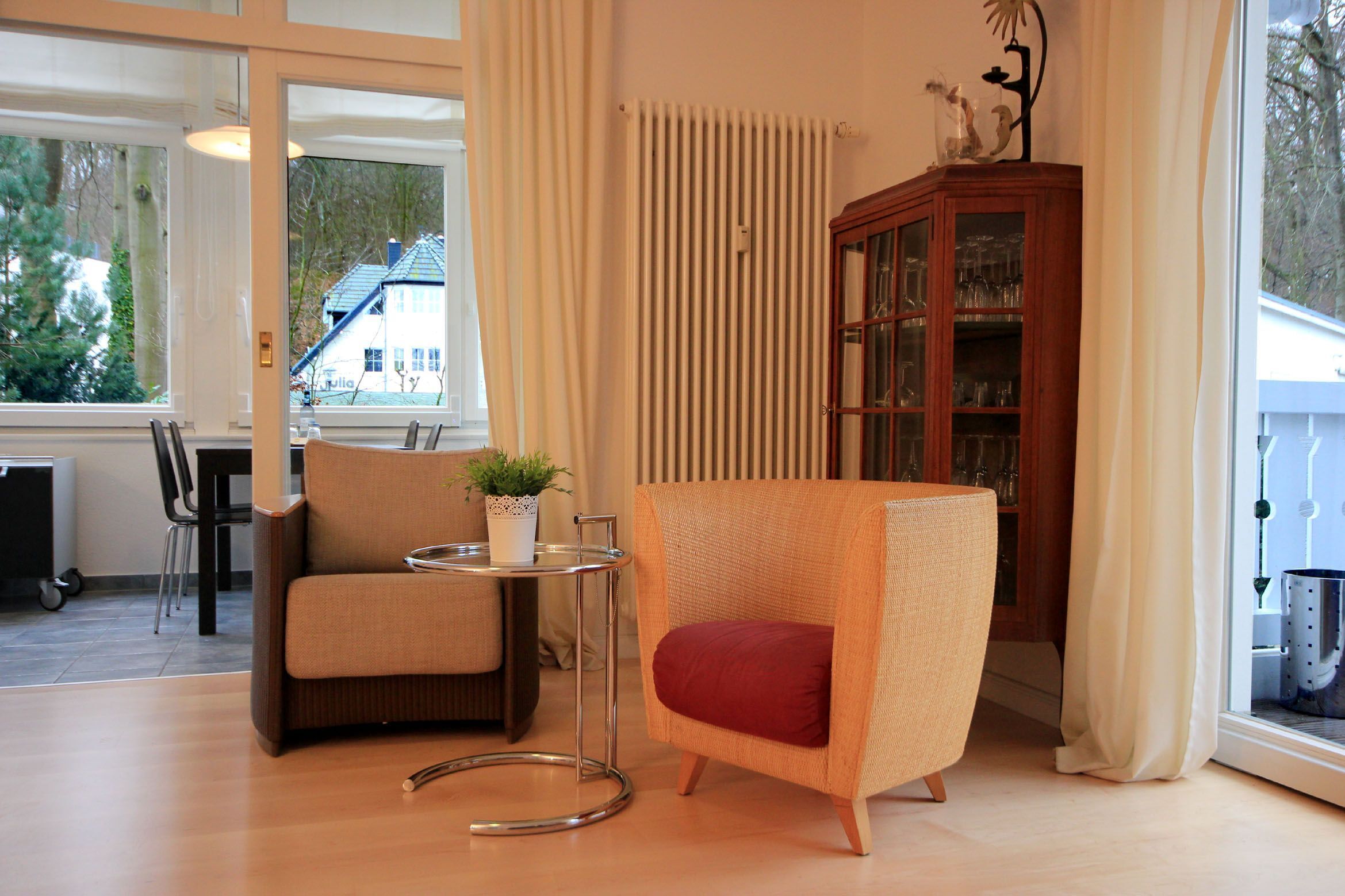 Apartamento 40RB32, Villa Stranddistel: Su soleado apartamento de 3 habitaciones con vista al mar 40RB32 (para no fumadores) con un tamaño de aproximadamente 75m² está en el segundo Piso superior de la casa y puede ser ocupado por hasta 6 personas. El apartamento amueblado de alta calidad impresiona por su excelente ubicación. La amplia sala de estar inundada de luz le ofrece una zona de estar incl. Sofá cama, TV de pantalla plana, conexión WiFi gratuita y acceso directo al balcón hacia el mar Báltico. La cocina abierta con comedor se conecta con la sala de estar. La cocina dispone de lavavajillas, nevera / congelador, horno. Vitrocerámica, microondas, cafetera, tetera, tostadora y otros accesorios de cocina totalmente equipados. En el dormitorio principal hay una cama doble (180x200) y un gran armario con suficiente espacio de almacenamiento. El 2do El dormitorio está ubicado en el jardín de invierno justo al lado y tiene otra cama doble (140x200). El baño está equipado con lavabo, ducha, toallero eléctrico y aseo. Un espacio de estacionamiento que pertenece al apartamento (altura de entrada de estacionamiento doble máx. 1,70 m) está disponible directamente en la villa. La silla alta del propietario y la cuna de viaje son parte del apartamento.[nbsp] [nbsp] Todo alrededor de un apartamento bien amueblado que te invita a reducir la velocidad. ¡Disfruta de tus vacaciones y haz de este apartamento tu segundo hogar!