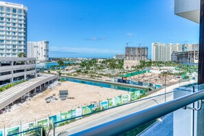 Ocean view condo w/ luxury pool access, central AC, WiFi & shared rooftop/dock