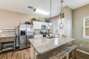We were in town for my son's winging, so we did a lot of driving between Corpus Christi and Kingsville, which meant we weren't able to spend as much time at the property as we would have liked to. We had 10 members of my family and there was more than enough room for all of us. The property was very clean, there is a nice view from the upper levels, good location near the beach. We would stay again.