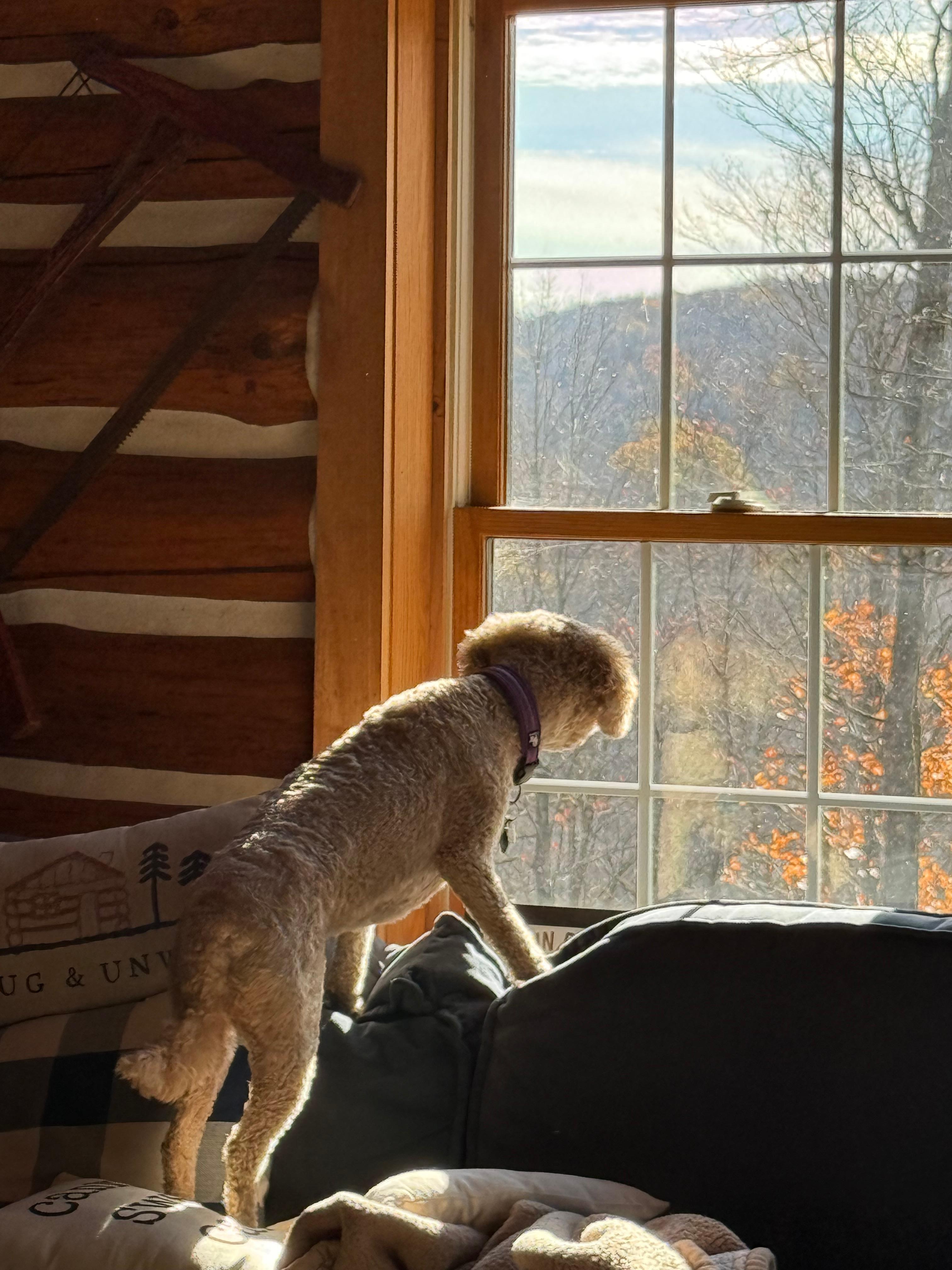 The cabin is well-crafted and so homey, especially when the wood-fired stove is burning. We lit the stove as soon as we got there, as it was very cold inside the cabin when we arrived. The outside fire pit was also appreciated, as the weather was warm enough to enjoy some outdoor time. There is an ample supply of wood. The spiral staircase that leads to the bedroom was a little tricky to navigate. We were worried that our elderly dog would take a tumble down the stairs to the basement, so we had to block off the area around the stairs with some chairs. Although we planned this visit to see the stars, unfortunately, it was cloudy while we were there. However, I can understand that this must be a beautiful spot to sit and watch the skies. There are trails around the cabin that we were able to walk, which was nice. If you have a quad, I’m sure it’d be a lot of fun to use them here. The driveway leading to the house has some switchbacks, which we were able to navigate with my husband‘s truck, but it was a little dicey as it was very muddy when we visited. There was also quite a bit of food left in the refrigerator and freezer, which was surprising. Overall, this is a good place to visit and the surrounding area has several beautiful parks. If you’re able to see the skies on a clear night, enjoy!
